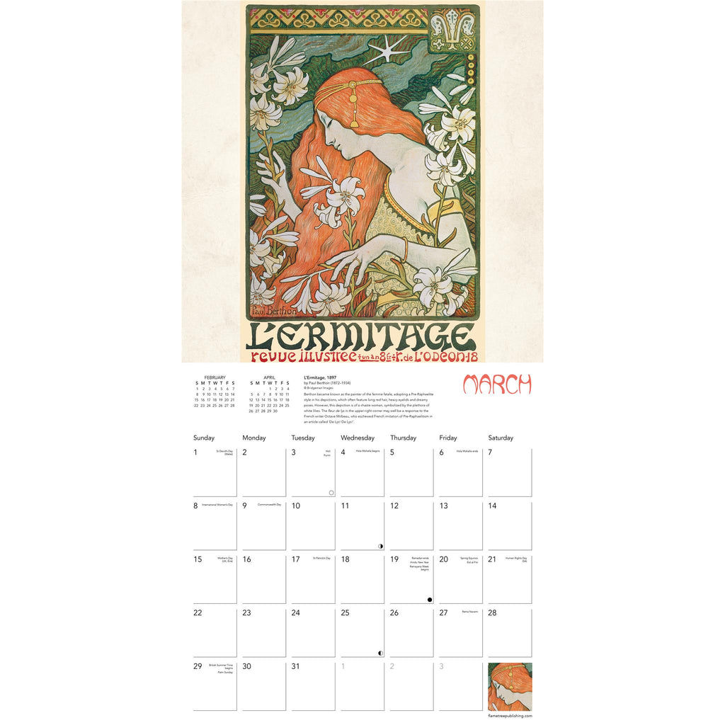 The turn of the twentieth century brought an exciting new art form: Art Nouveau posters celebrated the joie de vivre of the modern age through promoting both commercial products and cultural exhibitions in their own beautiful style. This calendar includes works by such celebrated artists as Alphonse Mucha, Eugene Grasset and Paul Berthon. Informative text accompanies each work, and the datepad features previous and next month’s views. Printed on FSC-certified paper, with plastic-free packaging.