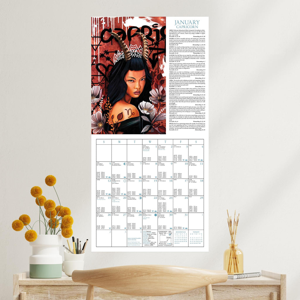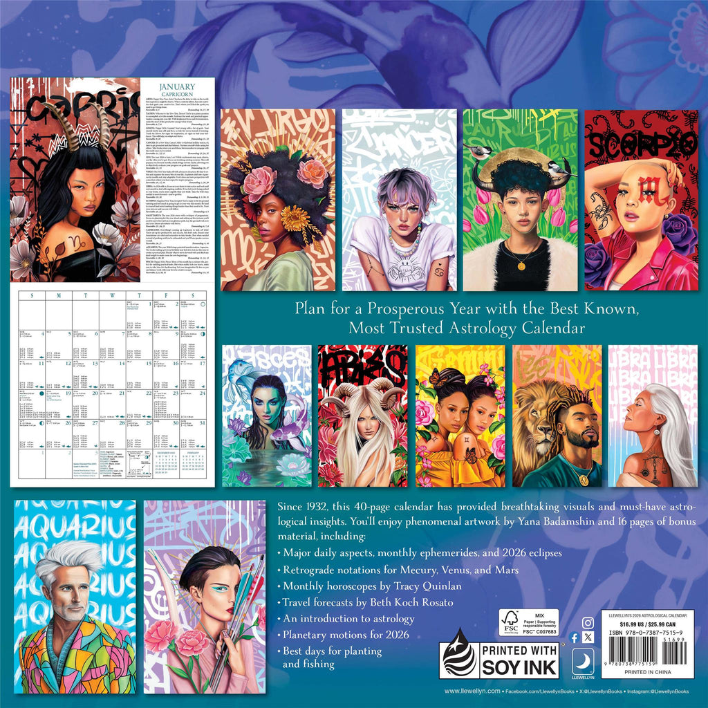 A trusted and bestselling annual, Llewellyns Astrological Calendar has been a consistent source of eye-catching artwork and astrological insights for more than nine decades. Delight in this years new content, including enthralling illustrations by Helena Elias, a table of planetary motions, and a table of the year's new and full moons. Each month features rewarding and challenging days, monthly horoscopes, and travel forecasts. Additionally, the sixteen pages of bonus material offer plenty to explore, from planetary sign changes and retrograde tables to major daily aspects and ephemeris tables. From the astrology primer to the 2025 eclipses, there is something for everyone regardless of skill level.