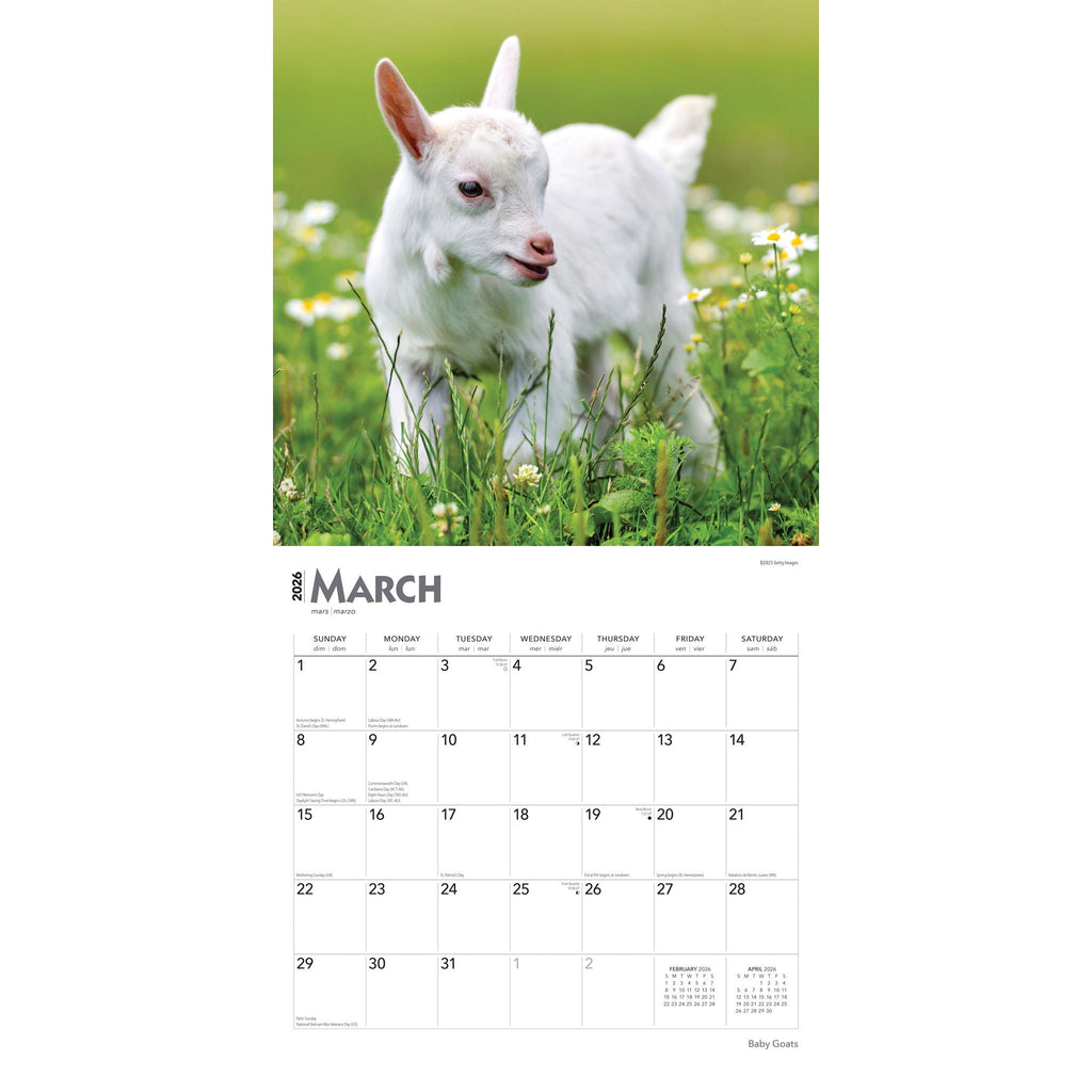 Hoof around with these adorable baby goats! Kids are curious by nature, and these goats are no exception. They love to explore with their herd and climb anything they can find. These horned herbivores are raised for their wool and milk, and are often born as twins. They learn to stand within minutes of birth, and jump and climb within a week. These hollow-horned, cud-chewing creatures pose poignantly for the camera in this charming Baby Goats calendar. No kidding around!