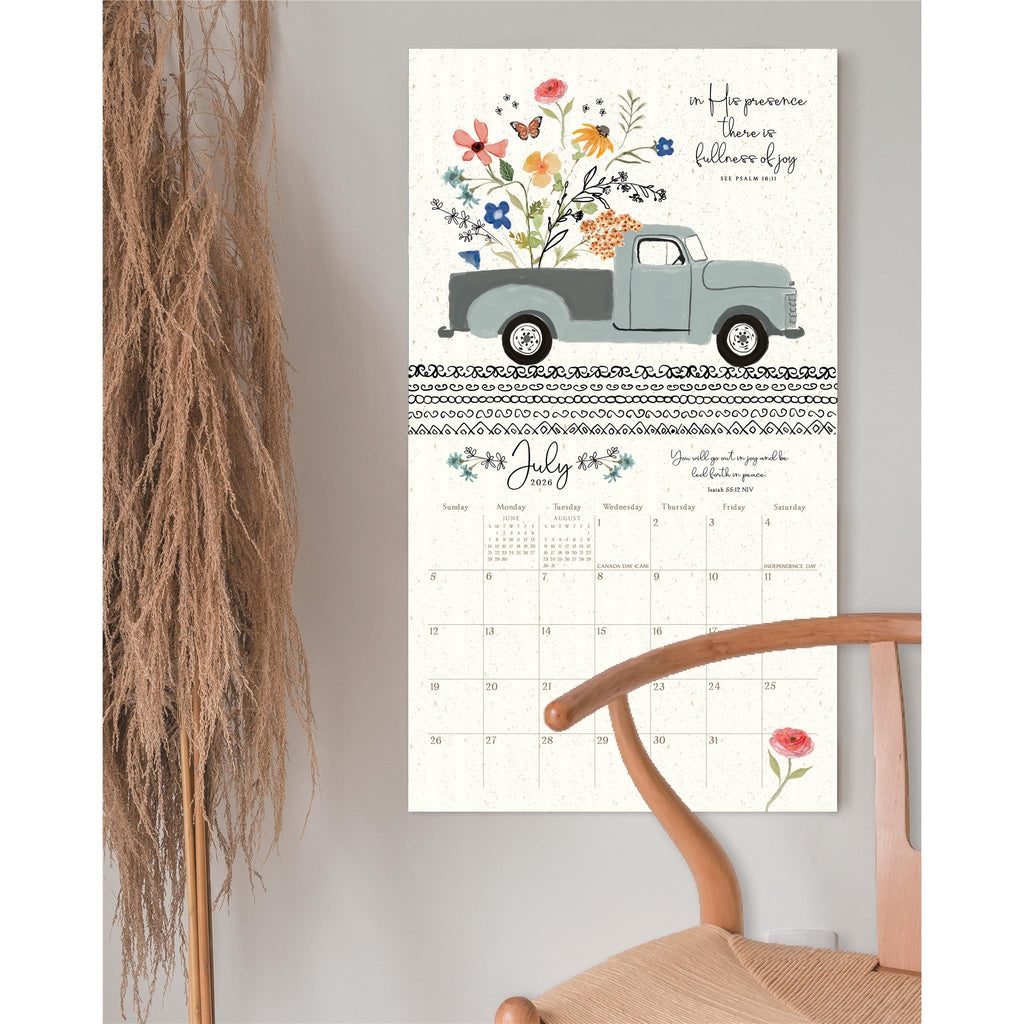 This 2026 Legacy Wall Calendar features beloved Scripture verses on the lovely and inspiring watercolor artwork of artist Amylee Weeks. Each 12-month calendar is printed on premium, linen-embossed paper that has a distinctive, luxurious feel to it, and comes in a protective sleeve. The date pad is uniquely designed for each calendar title to complement the artwork. The last page contains a 2-year calendar (2026/2027) and space for notes. Brass gusset on front cover for added durability.