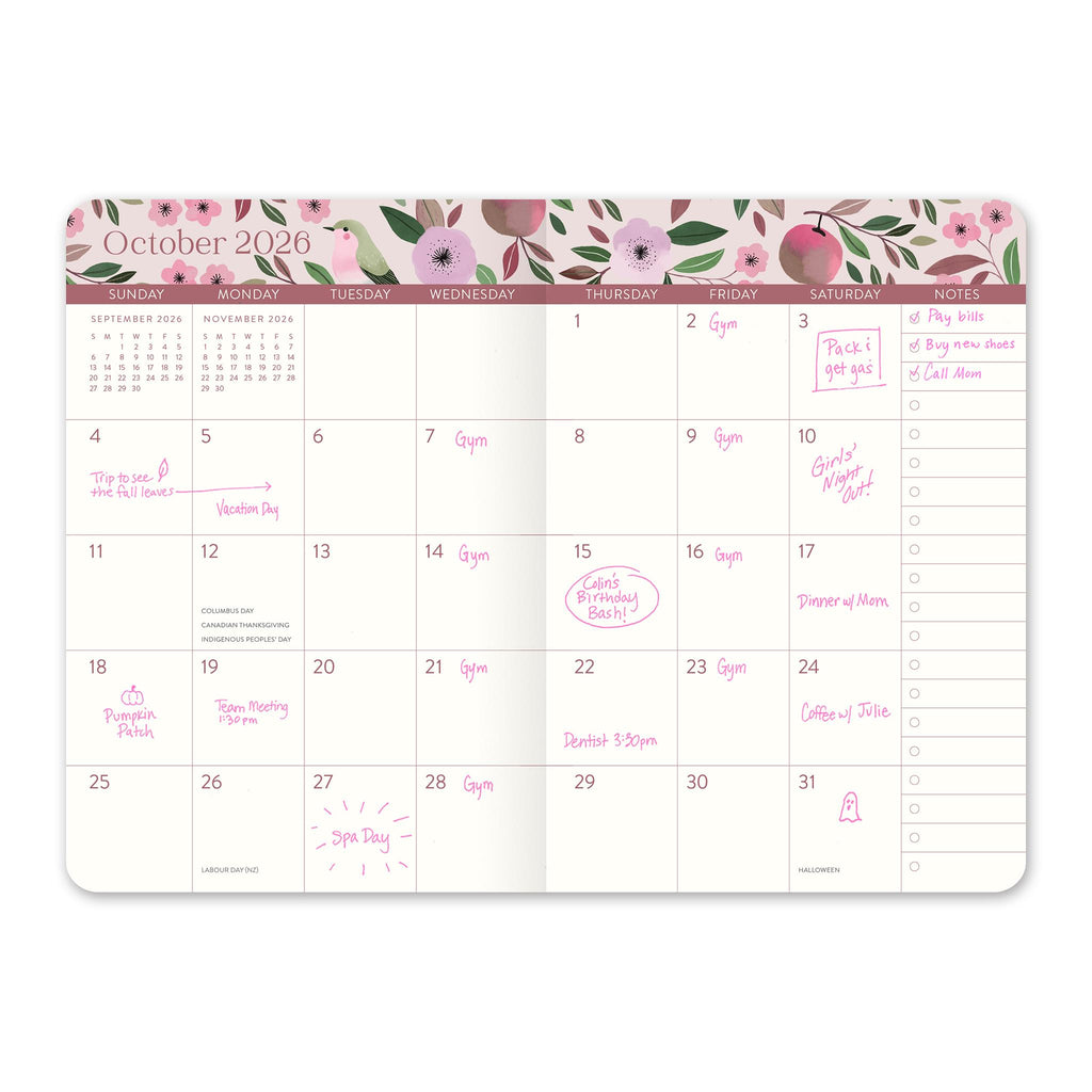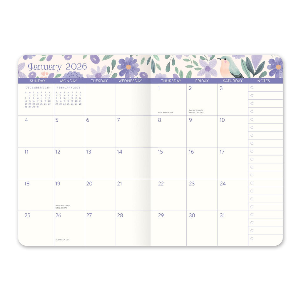 Get the style and utility of a traditional monthly planner in a petite package with Orange Circle Studio's Monthly Pocket Planner. Featuring attractive monthly views, goal prompts, and delightful art throughout, this planner helps you keep important appointments, dates, and notes at your fingertips. The planner fits perfectly in your pocket, purse, or backpack, and rounded corners prevent damage so you can enjoy this durable planner all year long. Additionally, the artist benefits directly from each planner purchased, further supporting creative communities around the globe.