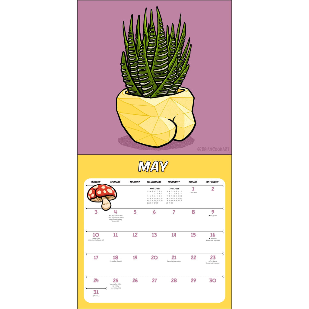 From tennis balls sporting derrieres to beach chairs that seem a bit cheeky, this calendar blends surrealism with a healthy dose of laughter. It's a whimsical journey into a world where everything has a booty—turning ordinary items into objects that might make you snicker. In a world where seriousness reigns, Brian Cook's playful touch reminds us that sometimes, all it takes is a clever twist to bring a smile to our faces. Features include: 12" x 12" (12" x 24" open). Fold-around cover design eliminates need for plastic packaging. Printed on FSC® certified paper with soy-based ink. Planning spread for September–December 2025. Spans January–December 2026. Generous grid space for notes, appointments, and reminders. Official major world holidays and observances. Moon phases, based on Universal Time. Each monthly spread features a full-color booty-ful original illustration.