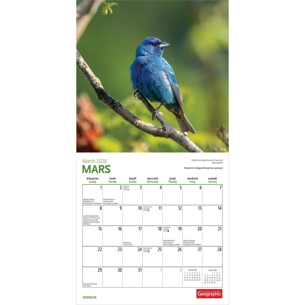 Nous vous proposons une fois de plus une sélection d'oiseaux nord-américains fascinants, notamment des oiseaux de proie, des oiseaux chanteurs et des oiseaux aquatiques. Le calendrier est parfait pour les amateurs d'oiseaux de votre famille. Ce calendrier mural est produit en format français. - - - From songbirds to birds of prey, this Canadian Geographic calendar celebrates the fascinating world of North American birds through images sourced from the Can Geo Photo Club. This mini wall calendar is produced in French.