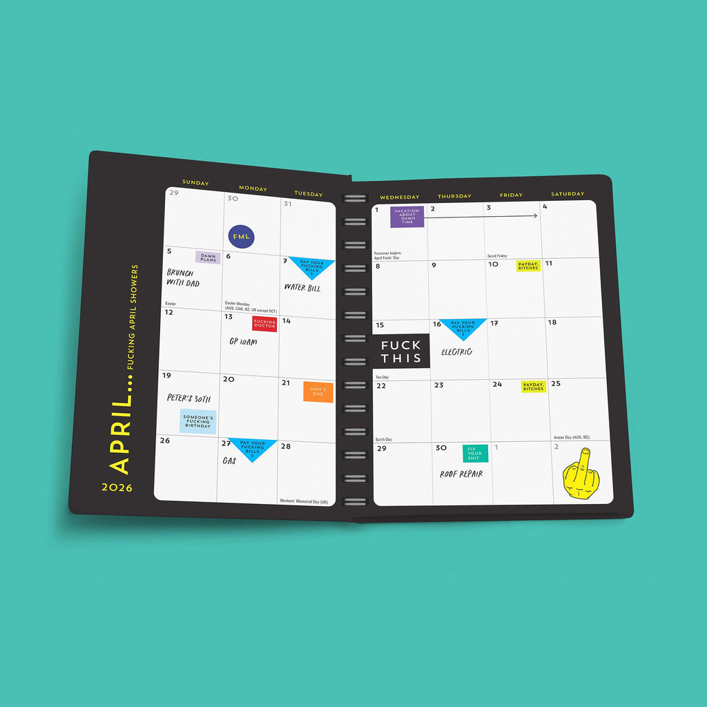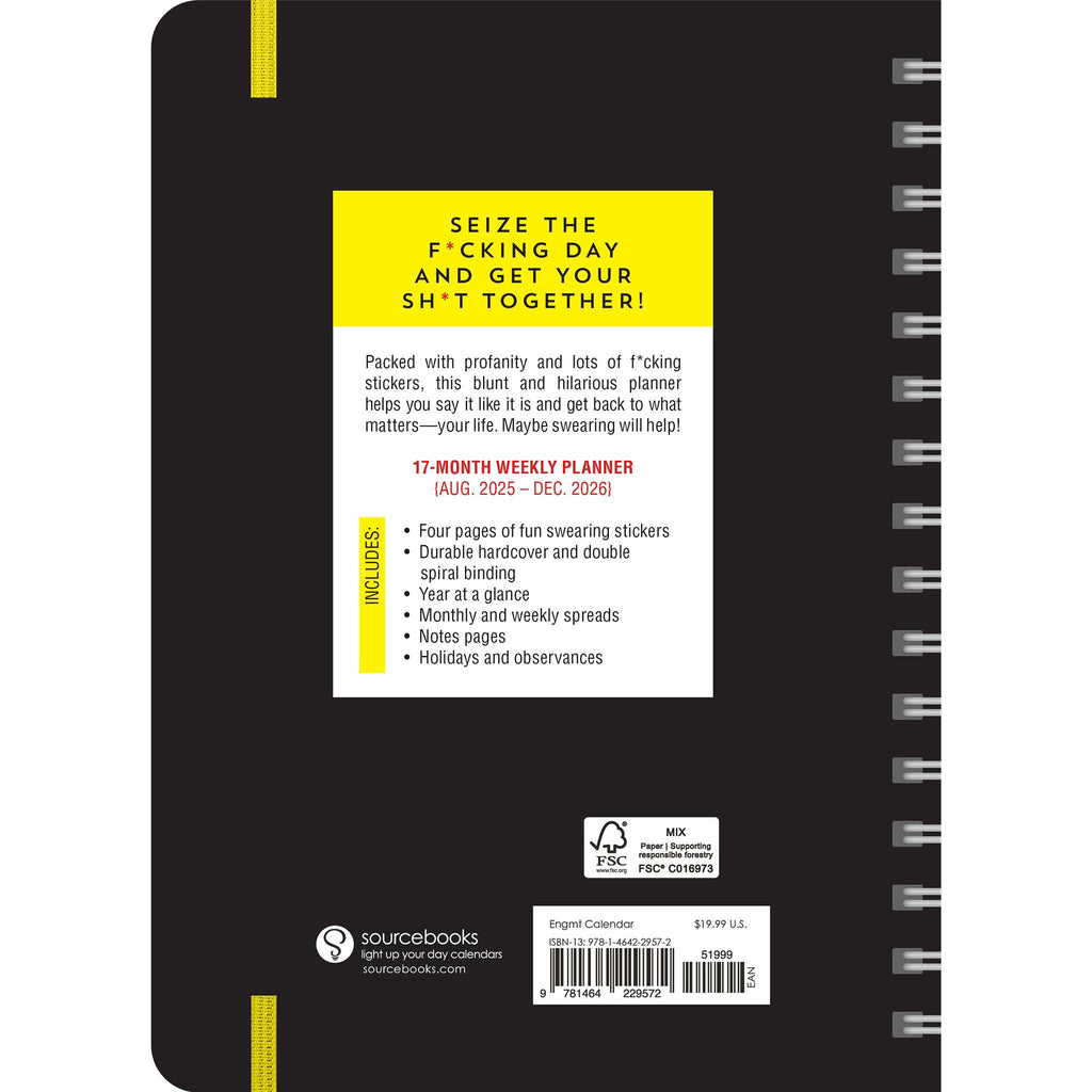 Seize the f*cking day and get your sh*t together with this hilarious planner! Packed with profanity and lots of swearing stickers for adults, this sarcastic and humorous carpe diem swear planner says it like it is while keeping you organized. Bursting with humorous inspiration and bold internals, this 2026 engagement calendar will help you laugh off the stress, get sh*t done, and (maybe) swearing will help! The perfect gifted organizer for any men or women in your life or to keep for yourself!17-MONTH WEEKLY PLANNER (AUGUST 2025 - DECEMBER 2026)Four planner sticker sheets with over 325 funny and motivational swear word journal stickers for adults6" x 8" planner with durable hardcover and double spiral wire-o binding for easy, lay-flat writingElastic band closureEnvironmentally responsible, FSC certified and smudge-free paperYear at a glanceMonthly and weekly spreads with ample writing space and "sh*t to remember" listsNotes pagesMonthly goals pagesHolidays and observances