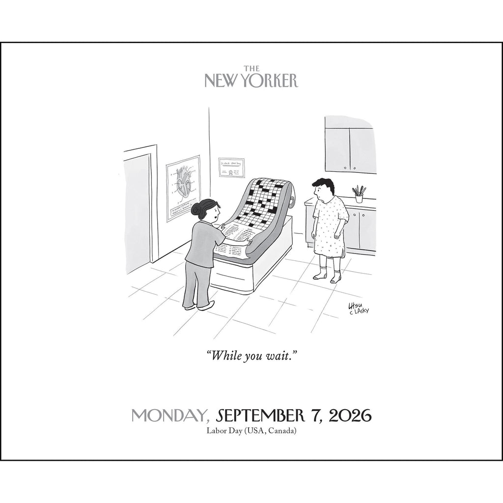 This daily calendar is perfect for anyone who appreciates witty, subtle humor. The cartoons cover a wide variety of topics—such as relationships, workplace woes, and pets—so there is something for everyone. Each daily page features a new cartoon created by one of The New Yorker's celebrated cartoonists. Features include: No single-use plastic. 5.4 x 4.5 in page size. Recyclable chipboard easel backer for desk or tabletop display. Printed on FSC® certified paper with soy-based ink. Tear-off pages. Back of pages are blank for notes or shopping lists. Day/Date reference on each page. Combined weekend pages. Official major world holidays and observances. Daily black and white cartoons from The New Yorker.