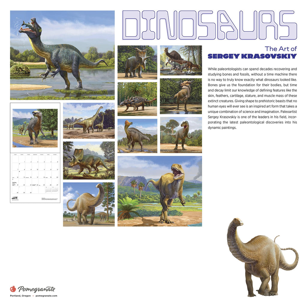 While paleontologists can spend decades recovering and studying bones and fossils, without a time machine there is no way to truly know exactly what dinosaurs looked like. Bones give us the foundation for their bodies, but time and decay limit our knowledge of defining features like the skin, feathers, cartilage, stature, and muscle mass of these extinct creatures. Giving shape to prehistoric beasts that no human eyes will ever see is an inspired art form that takes a unique combination of science and imagination. Ukrainian paleoartist Sergey Krasovskiy is one of the leaders in his field, incorporating the latest paleontological discoveries into his dynamic paintings. Enjoy 12 of his dinosaur depictions in this calendar.