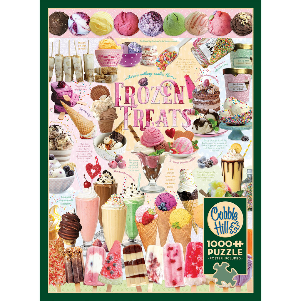 Frozen treats to satisfy your sweet tooth. This 1,000 piece puzzle is filled with ice cream, gelato, popsicles, milkshakes… and lots and lots and lots of calories. Cobble Hill puzzles feature interesting random-shaped pieces, so no two pieces are alike. Includes a handy poster.