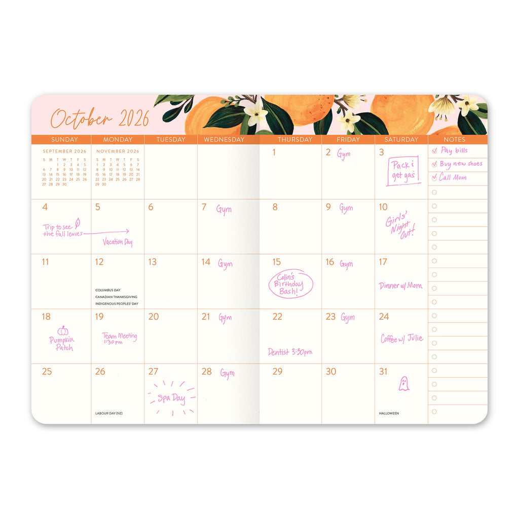 Get the style and utility of a traditional monthly planner in a petite package with Orange Circle Studio's Monthly Pocket Planner. Featuring attractive monthly views, goal prompts, and delightful art throughout, the Fruit & Flora Monthly Pocket Planner helps you keep important appointments, dates, and notes at your fingertips. The planner fits perfectly in your pocket, purse, or backpack, and rounded corners prevent damage so you can enjoy this durable planner all year long. Additionally, the artist benefits directly from each planner purchased, further supporting creative communities around the globe.