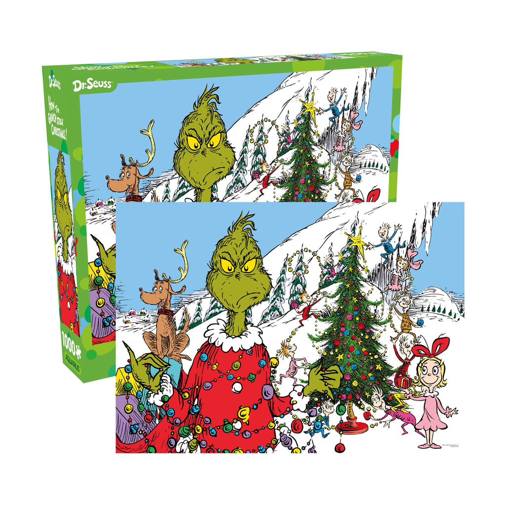 1000 PIECE JIGSAW PUZZLE: Enjoy piecing together this colorful 1000 piece puzzle featuring characters from The Grinch! This puzzle is detailed with your favorite characters from the iconic movie. To add to the festivity, this Glitter Puzzle features sparkling snow.