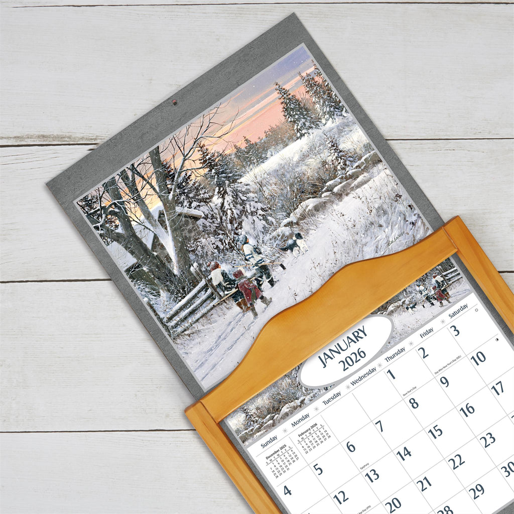 The Hockey Hockey Hockey 2026 Wall Calendar is decorated with monthly artwork by D.R. Laird of hockey being played in various locales. LANG Wall Calendars feature monthly full color images, elegant linen embossed paper stock, and a brass grommet for hanging. Desktop wallpaper download available.