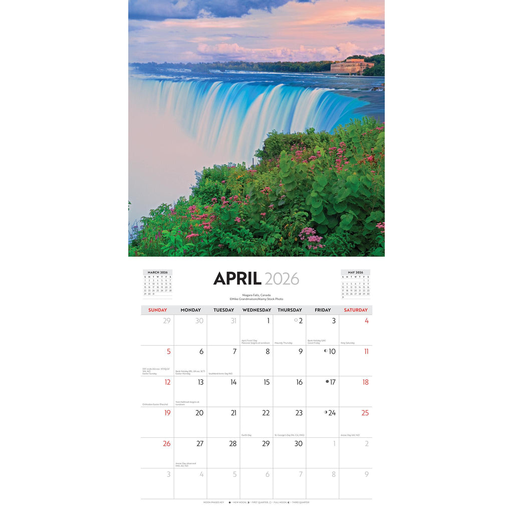 For the travel enthusiast, featuring 12 popular and awe-inspiring destinations – from Mount Fuji in Japan and Taj Mahal in India to the Northern Lights of Norway. Includes International, National, and Regional Australian and New Zealand Public Holidays and other important dates, school term dates for Australia and New Zealand, and a bonus next-year planner. Each month displays a mini datepad as reference to the previous and next months, southern hemisphere moon phases, and image captions and credits throughout.