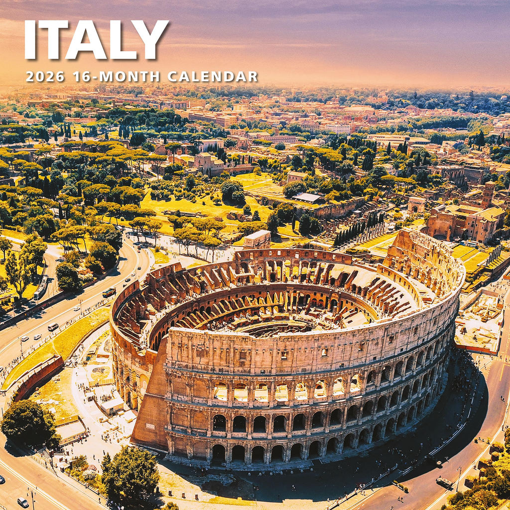Discover the sights of amazing Italy with this wall calendar for 2026. From the country's stunning natural beauty, to its captivating cities, such as the unique city of Venice, each month has a fantastic image and a handy date grid for your all important appointments. This calendar is free of plastic packaging.