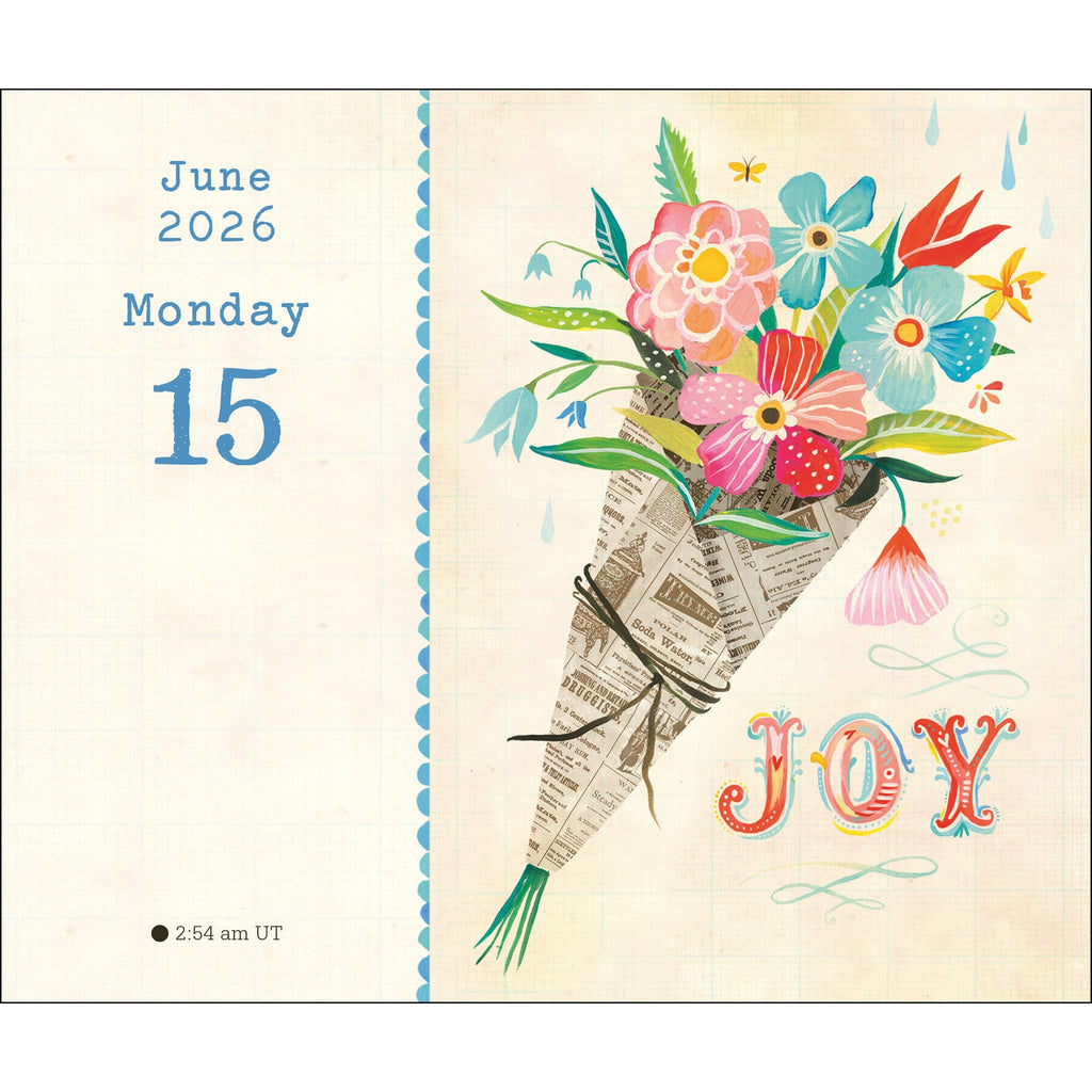 Showcasing delightful art on every page of whimsical blooms, butterflies, birds, and cozy comforts of home, the inspirational calendar also features encouraging words from great poets, authors, and Katie herself. Features include: No single-use plastic. Page size 5.4 x 4.5 in. Box size 5.9 x 5 in. Recyclable chipboard easel backer for desk or tabletop display. Printed on FSC® certified paper with soy-based ink. Full-color tear-off pages. Day/Date reference on each page. Combined weekend pages. Official major world holidays and observances. Art and inspiration from the author/illustrator of the New York Times bestseller How to Be a Wildflower and How to Be a Moonflower . WE PLANT TREES to offset our carbon footprint and resource usage — more than ONE MILLION and growing! RESPONSIBLY SOURCED — Our paper is responsibly sourced from a combination of recycled materials and wood harvested from socially and environmentally sustainable forests and is FSC® certified.