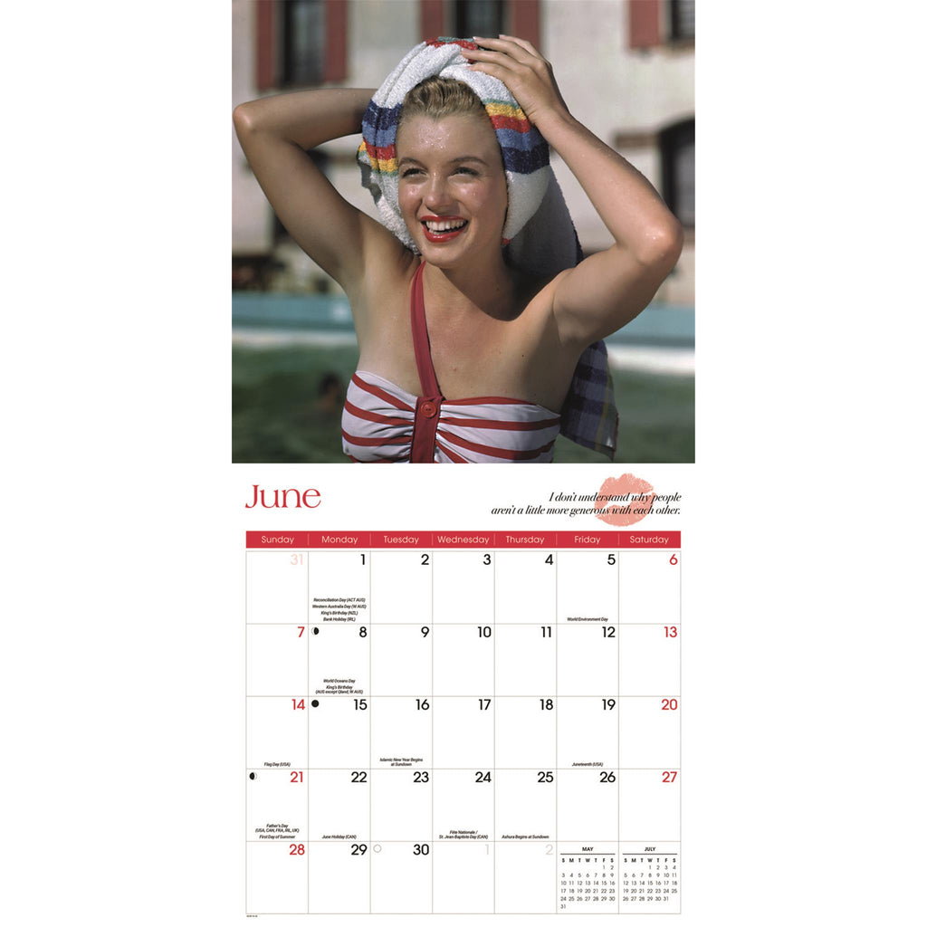 Glamorous, gorgeous, and charismatic, this blond bombshell was famous for her sexy walk, a distinguished acting career, and her tumultuous personal life. Marilyn Monroe became an American cultural icon and remains so decades after her tragic death. This magnificent black and white wall calendar for 2026 is a loving tribute to the incomparable Marilyn Monroe. This calendar is free of plastic packaging.