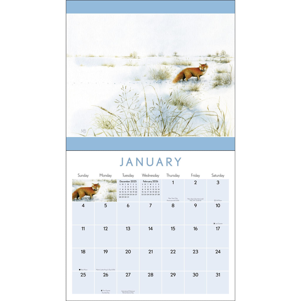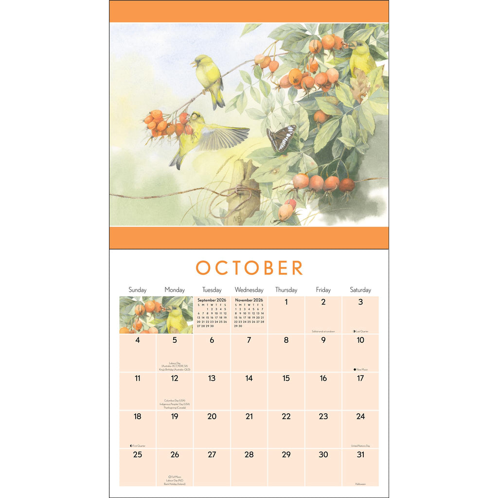 Nature lovers, gardeners, and bird watchers will enjoy the seasonal floral and nature-themed images by Dutch artist and author Marjolein Bastin. Each monthly grid has plenty of room to add your own special occasions and reminders. The 12-month calendar comes in a matching plastic-free envelope with a ready-to-frame print making it ideal for gift-giving.Features include: 8.5" x 11" framable print. 13.5" x 12" calendar (13.5" x 24" open). Matching plastic-free envelope. Printed on FSC® certified paper with soy-baed ink. Planning spread for September–December 2025. Spans January–December 2026. Generous grid space for events, appointments, and reminders. Official major world holidays and observances. Moon phases, based on Universal Time. Seasonal floral and nature-themed images from watercolor paintings by Marjolein Bastin.