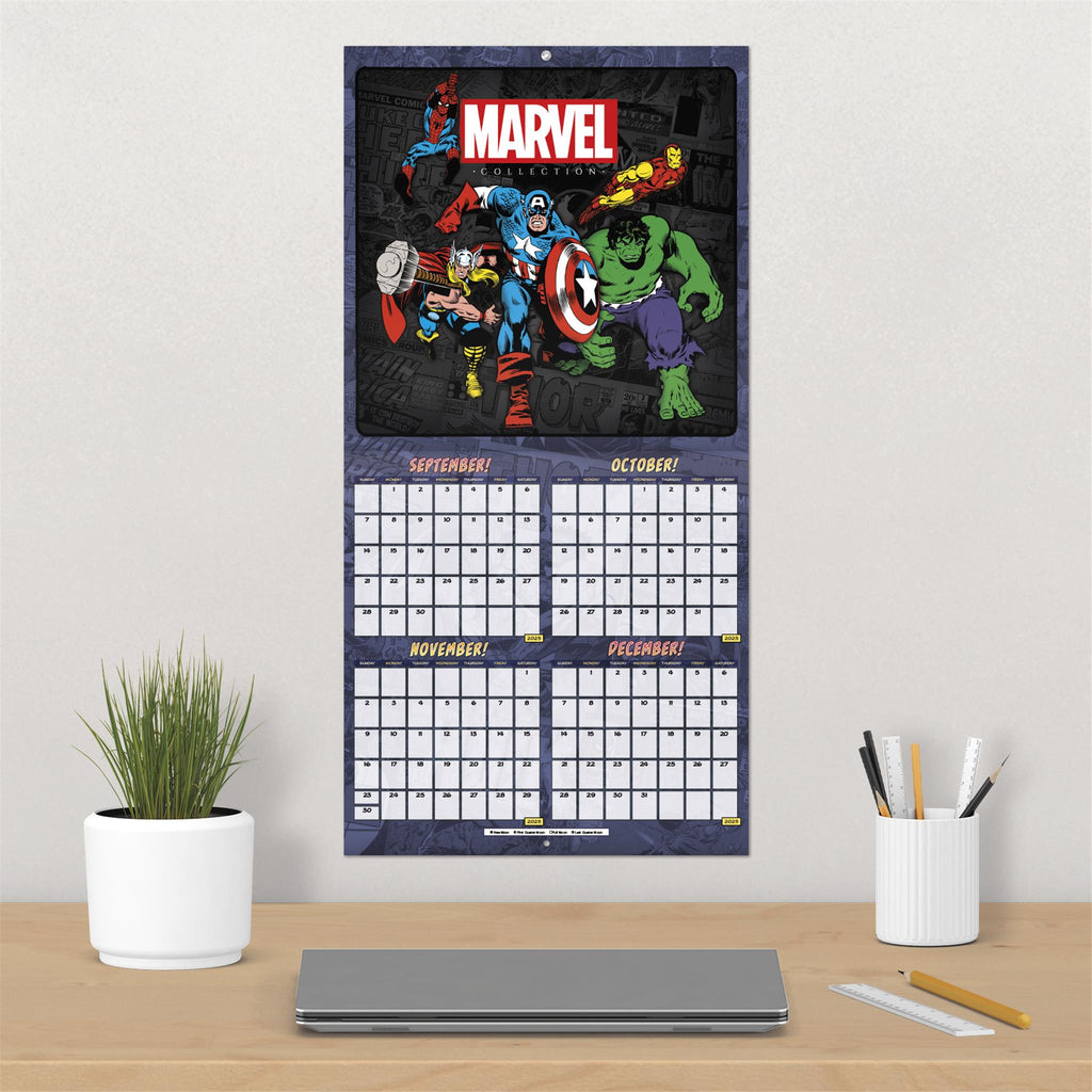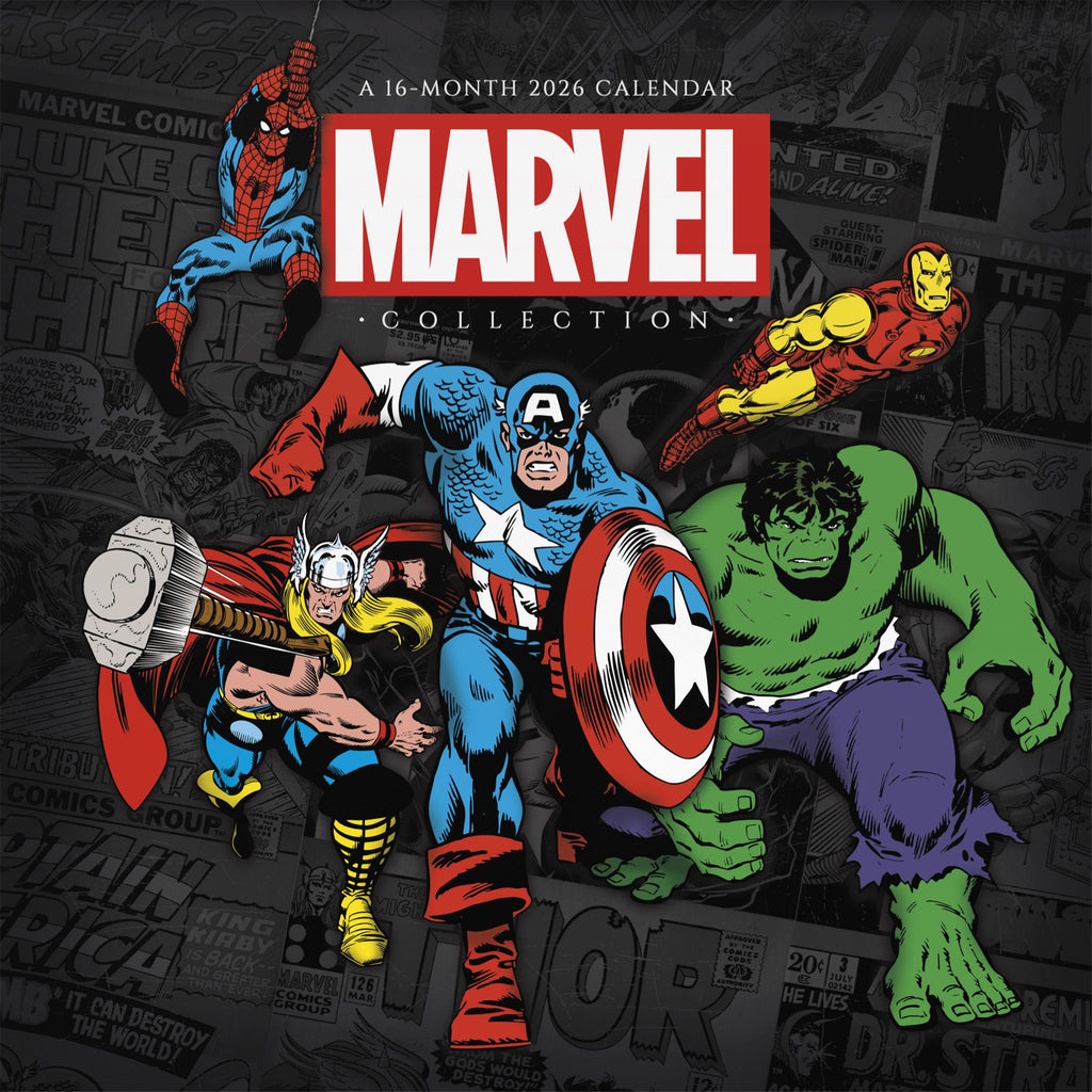Pow! Bam! Thwip! All of your favorite Marvel heroes have gathered to give you a great year with the 2026 Marvel Comics Calendar. Spider-Man, Thor, Captain America and more are all here in action-packed glory to celebrate the continued triumph of good over evil. Sixteen-month wall calendars feature monthly pages for January to December 2026, as well as a page combining the last four months of 2025. Each monthly page includes federal holidays and moon phases, with sufficient daily blocks for jotting down tasks and appointments to help you stay organized. Features 13 high-quality images printed on premium paper certified by the Forest Stewardship Council. Perfect for hanging on your wall, corkboard or bulletin board at home, school or the office.