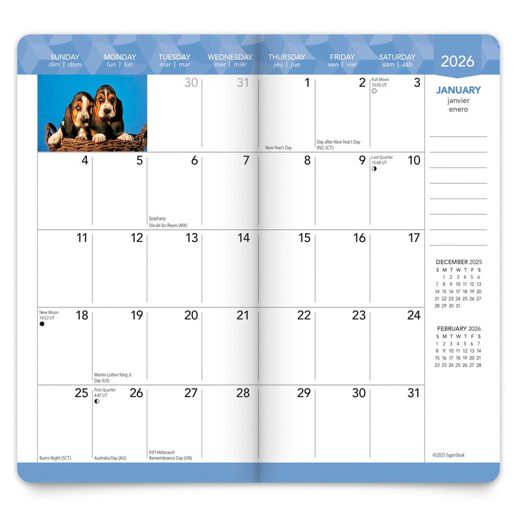 They trip and they slip. With all that boundless energy for play, those irresistible eyes, and the flaps upon flaps of skin to fill, puppies are just adorable. Let the sweet, lovable, and innocent puppies in this calendar brighten every one of your days this year.