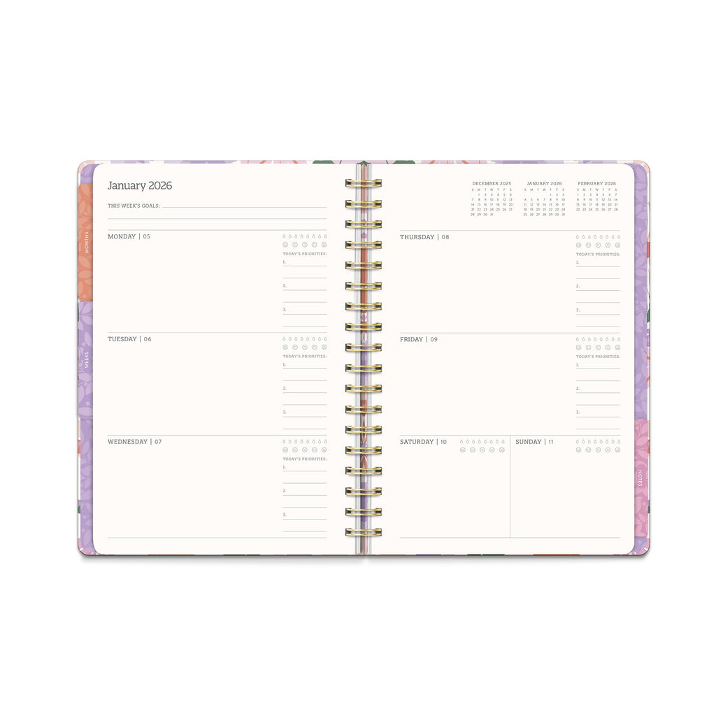 Designed with simplicity and convenience in mind, the Tri-Tab Planner from Orange Circle Studio is the ideal format for a productive, on-the-go lifestyle. The planner features three tabbed dividers so you can quickly turn to the section you need, whether it’s a monthly view, weekly view, or lined pages for note-taking. Each divider includes a pocket for storing receipts, lists, cards, and other loose notes. The sturdy cover and wire-o binding allow the planner to lie flat as you write, while the elastic band serves as both a secure closure and page marker. You’ll also find 96 colorful stickers for a simple way to spice up your planning experience.