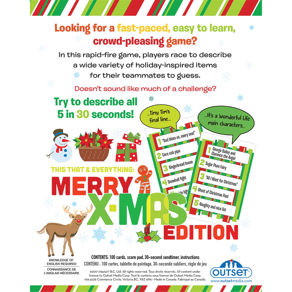This That and Everything: Merry X Mas Edition is about all things Christmas. Players race to describe a wide variety of holiday related things for their teammates to guess in 30 seconds or less