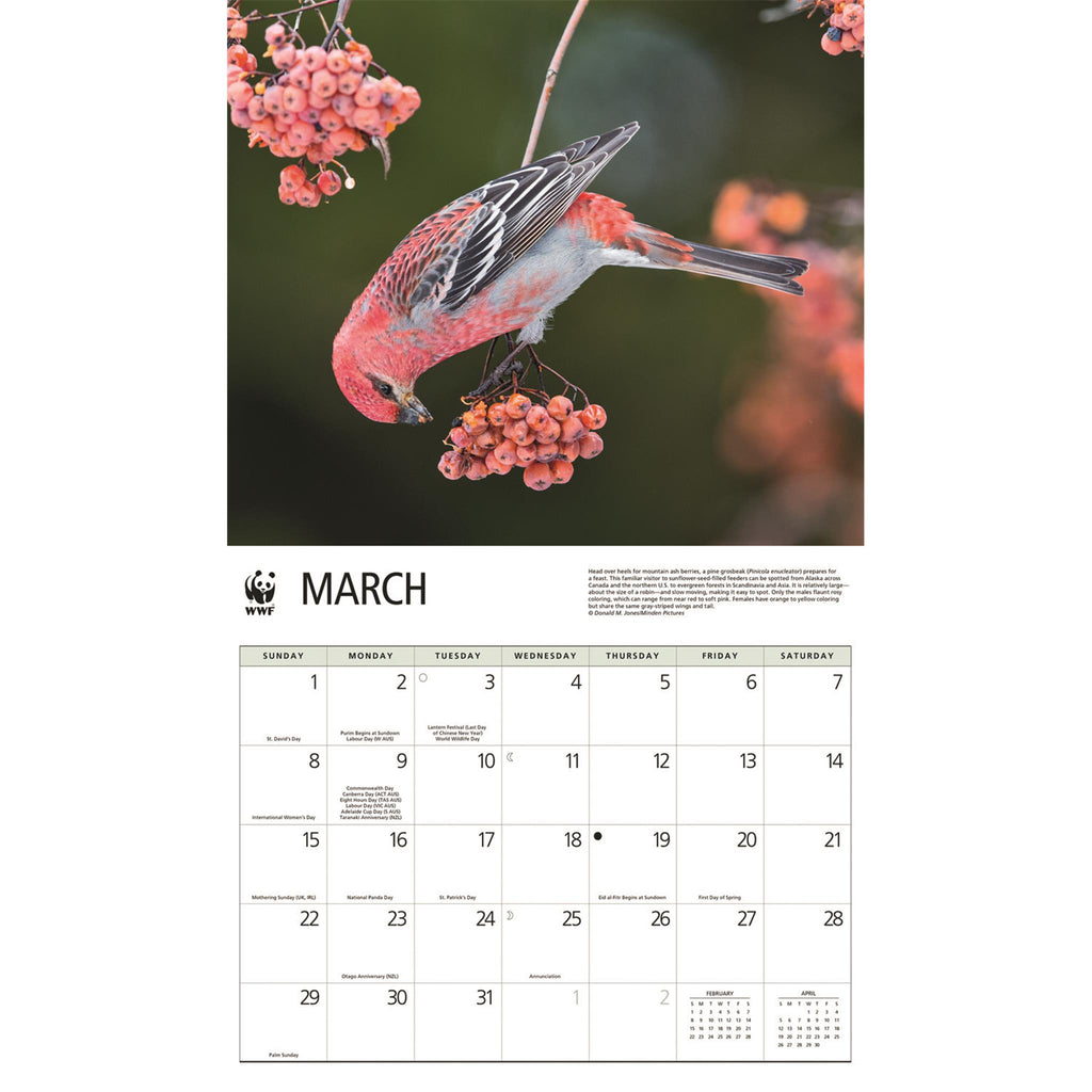 Some of the most beautiful neighbors live right outside your door birds! There are about 10,000 different species of birds found around the world. Follow 12 of the most interesting birds including the blue jay, hummingbird, cardinal, and chickadee. A large grid filled with moon phases and international holidays accompanies each vibrant photograph.