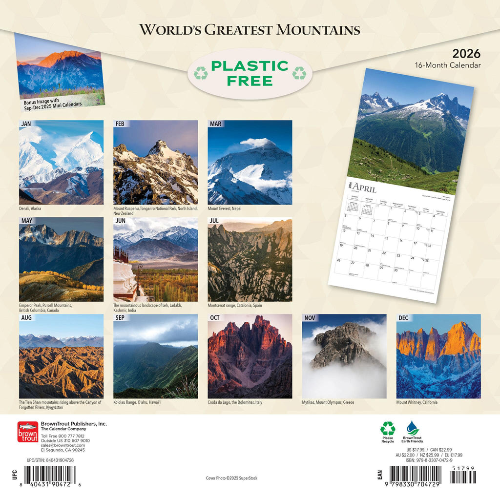 Worlds Greatest Mountains 2026 Wall Calendar - Online Only