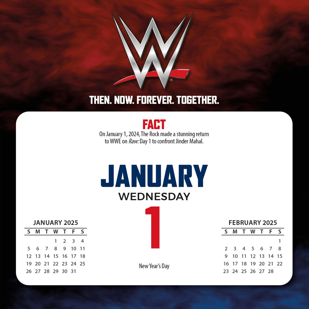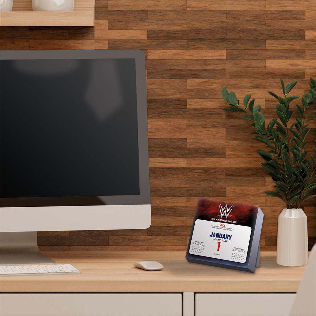 Introducing WWE 2026 Turner Boxed Daily Calendars have 365 days of engaging facts and challenging trivia questions. Additionally, the built-in stand lets you set it up on any desk or tabletop! Turner Daily Boxed Calendars are plastic-free and recyclable, printed on responsibly sourced FSC paper using soy ink. Size: 5.375"W x 5.375"H x 1.5"D