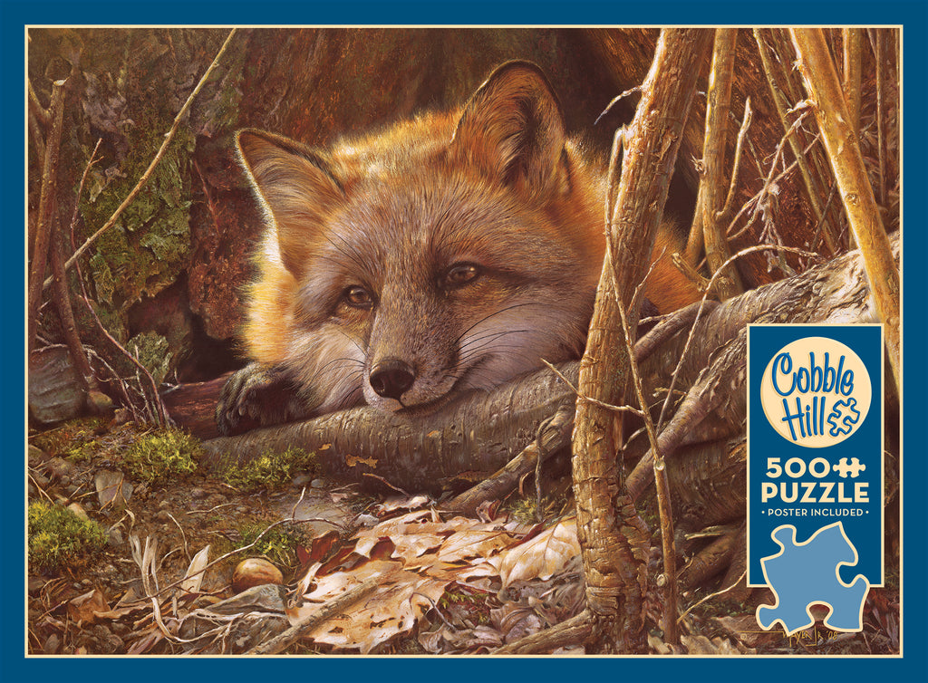 « Une Douceur de Chaleur » est un magnifique puzzle de 500 pièces représentant des animaux sauvages qui vous charmera. La douce lumière du soleil enveloppe d'une douce chaleur le renard roux, la tête posée sur une branche, parfaitement camouflé parmi les feuilles mortes. Les puzzles Cobble Hill se distinguent par leurs pièces aux formes aléatoires et originales : aucune n'est identique. Un poster pratique est inclus.