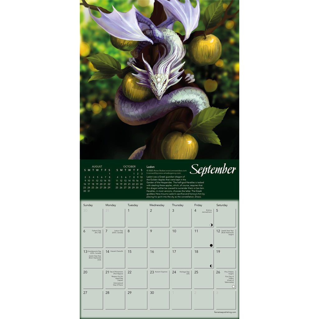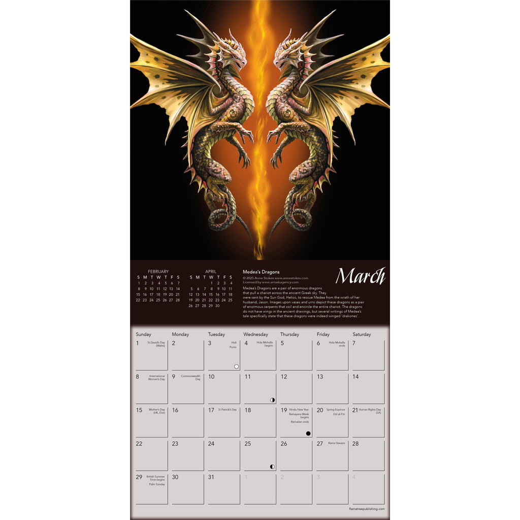 L'art fantastique d'Anne Stokes se caractérise par des illustrations saisissantes et des représentations réalistes de sujets fantastiques. Son œuvre explore une vaste palette de thèmes, de la forêt enchantée, romantique et magique, aux dragons terrifiants et au monde souterrain obscur des vampires gothiques. Ce mini calendrier mural rassemble 12 de ses magnifiques illustrations célébrant les légendes de dragons du monde entier. Un texte informatif accompagne chaque illustration et le calendrier permet d'afficher les mois précédents et suivants. Imprimé sur du papier certifié FSC, emballage sans plastique.