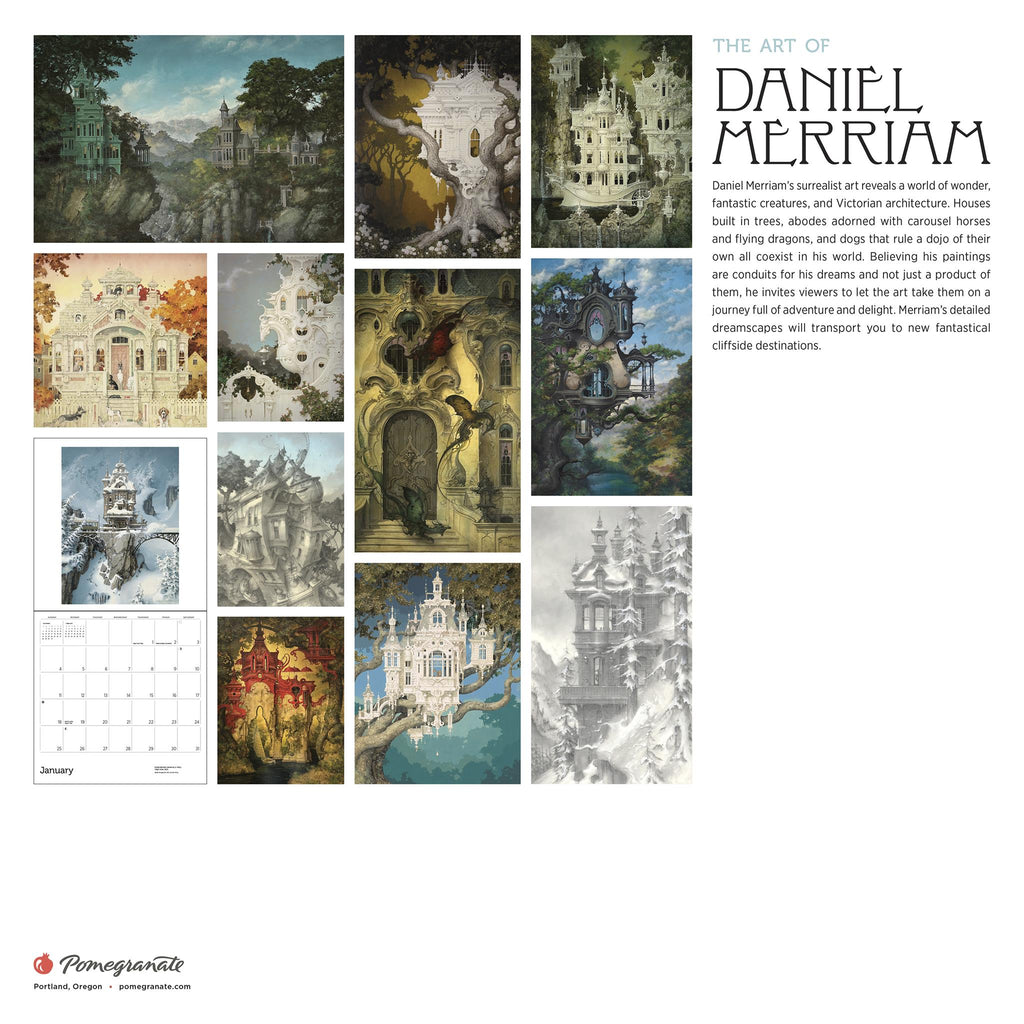 Imaginez une table intime pour deux sur un balcon reliant deux mondes, ou les visages pensifs et l'hippocampe gardien d'un portail magique vers un royaume aquatique. L'art surréaliste de Daniel Merriams révèle un monde merveilleux, peuplé de créatures fantastiques et d'architecture victorienne. Convaincu que ses peintures sont le reflet de ses rêves et non leur simple expression, il invite les spectateurs à se laisser emporter par son art dans un voyage plein d'aventure et d'émerveillement. Ce calendrier, qui présente douze des paysages oniriques détaillés de Merriams, vous transportera chaque mois vers une nouvelle destination.