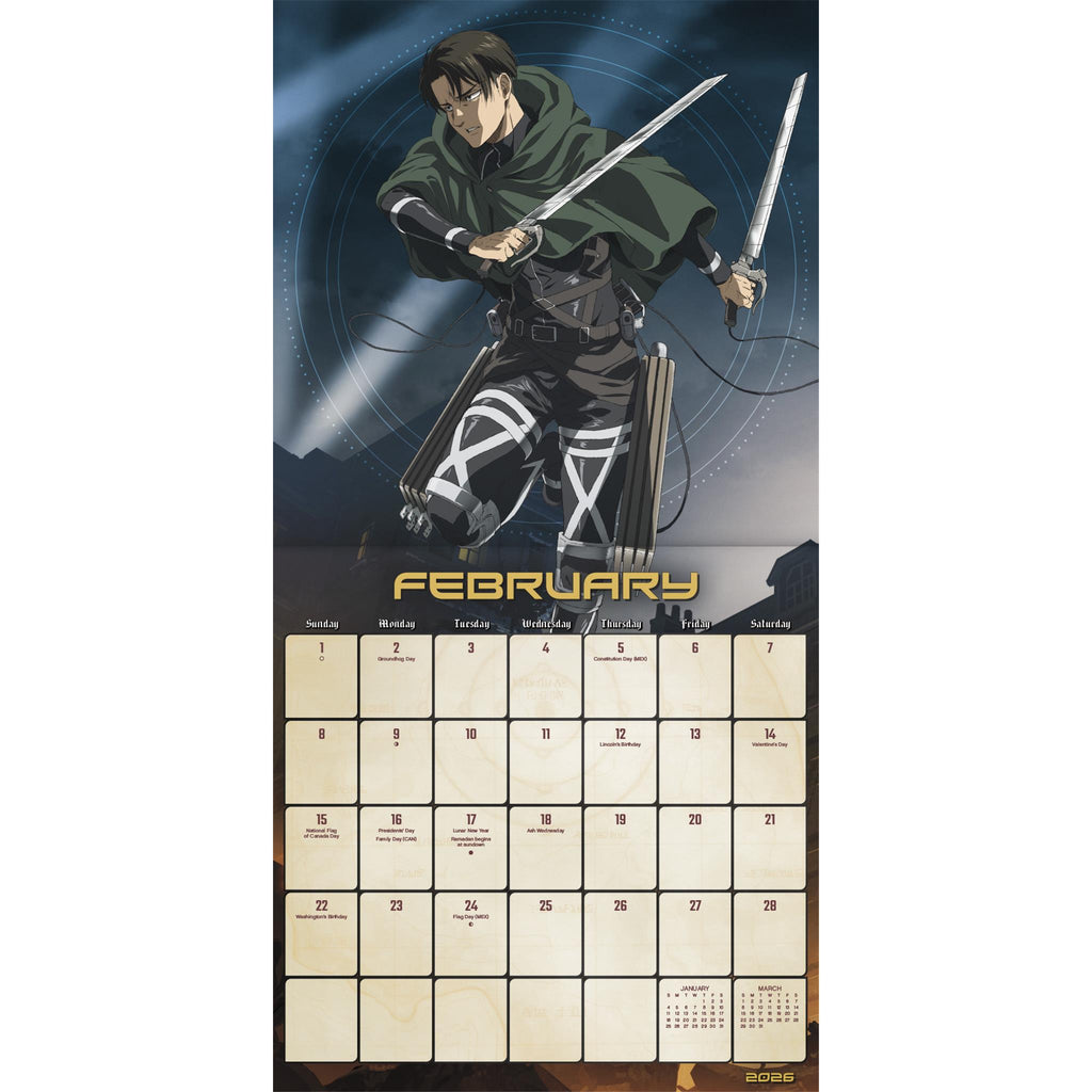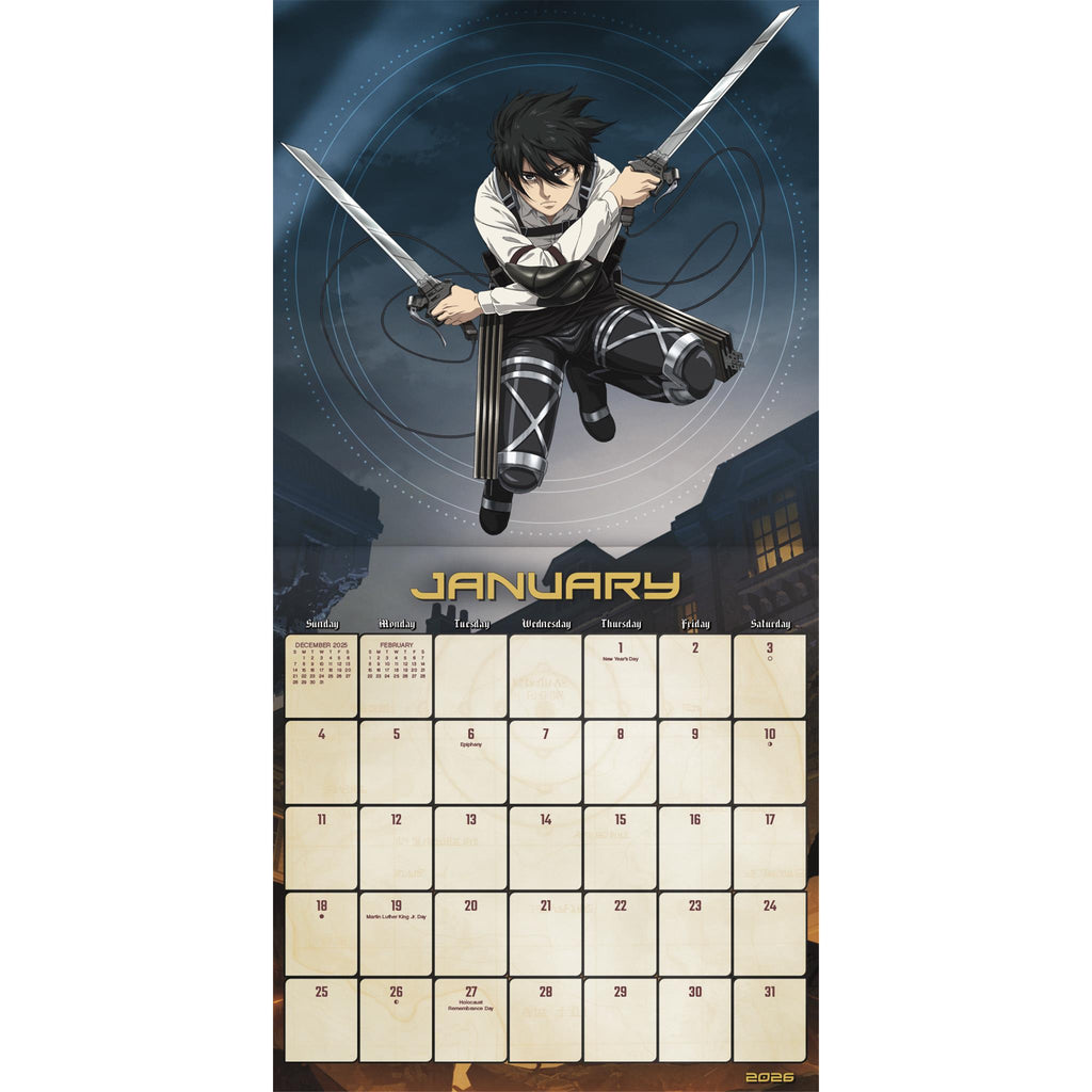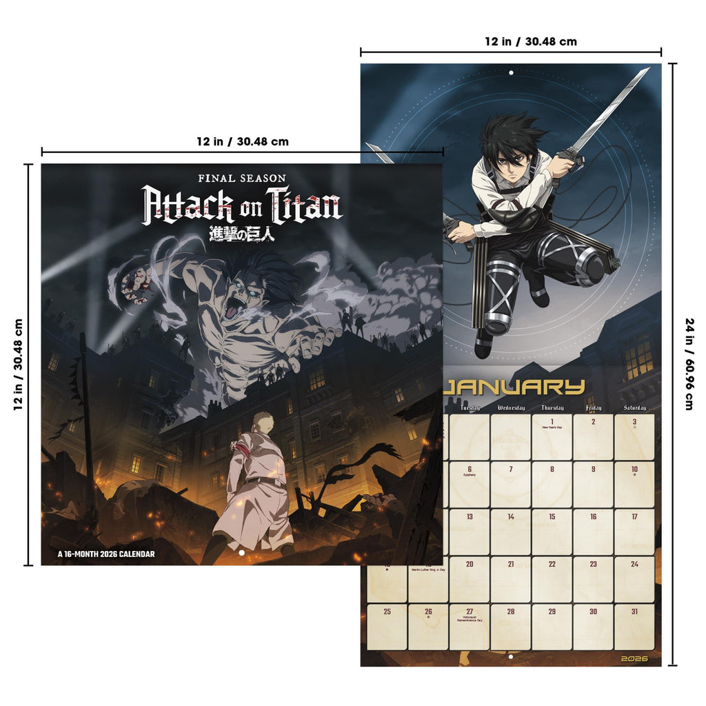 Il y a un siècle, les humains étaient contraints de vivre derrière d'immenses murs, tandis que des géants grotesques, les Titans, décimaient l'humanité, ne laissant subsister que les derniers survivants, dans le manga japonais à succès L'Attaque des Titans. Aujourd'hui, un jeune garçon nommé Eren Jaeger rêve d'explorer le monde extérieur, mais son rêve vire au cauchemar avec le retour des Titans. Suivez sa quête dans le calendrier L'Attaque des Titans 2026. Ce calendrier mural de seize mois propose des pages mensuelles de janvier à décembre 2026, ainsi qu'une page regroupant les quatre derniers mois de 2025. Chaque page mensuelle inclut les jours fériés et les phases de la lune, avec suffisamment d'espace pour noter vos tâches et rendez-vous et ainsi vous aider à rester organisé. Il présente 13 images de haute qualité imprimées sur du papier premium certifié FSC (Forest Stewardship Council). Idéal pour décorer vos murs, tableaux d'affichage ou panneaux de liège, à la maison, à l'école ou au bureau.