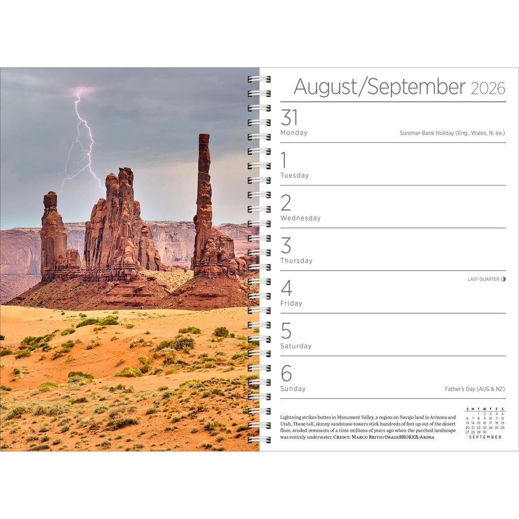 Un agenda hebdomadaire très apprécié, relié en spirale, présentant de magnifiques photographies de nature sauvage, de paysages spectaculaires, d'oiseaux et d'animaux du monde entier - réalisées par les experts en conservation d'Audubon.