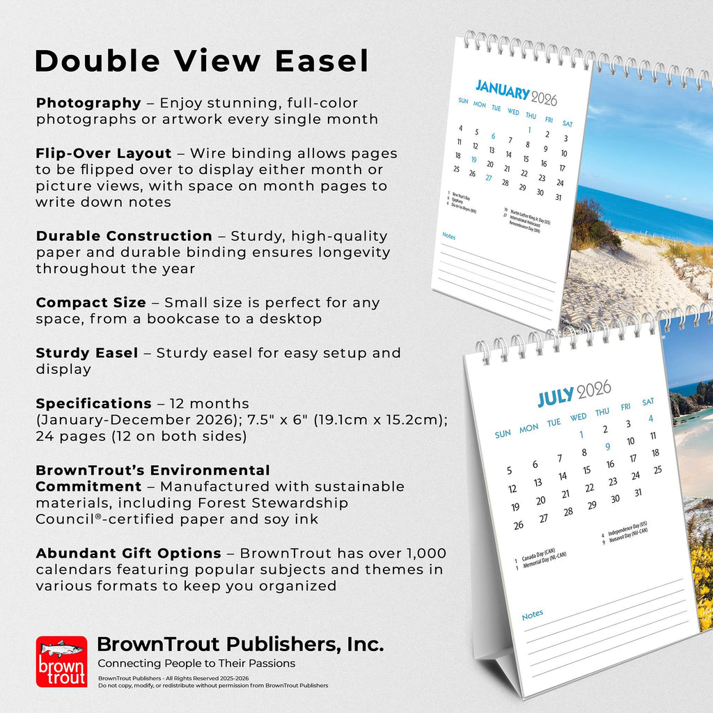 Le blues hivernal nous accompagne tous parfois. Plutôt que de vous morfondre durant ces mois froids, laissez ce calendrier Plages vous remonter le moral. Ces superbes photographies de magnifiques plages du monde entier sont comme une bouffée d'air frais, une véritable brise marine. Explorez le sable chaud et les eaux cristallines de ce paradis grâce à ce calendrier exceptionnel.