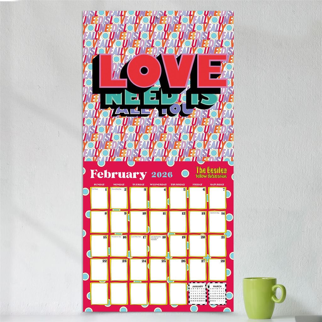 Nous vivons tous dans un sous-marin jaune ! Ce calendrier mural 2026 de 12 mois, mettant en vedette les Beatles, mesure 30,5 x 30,5 cm (30,5 x 61 cm ouvert) et présente treize images tirées du film culte de 1968. Il comprend des grilles mensuelles et un aperçu bonus de quatre mois, de janvier à avril 2027. Imprimé sur du papier mat premium certifié FSC, il offre une excellente écriture au stylo comme au crayon.