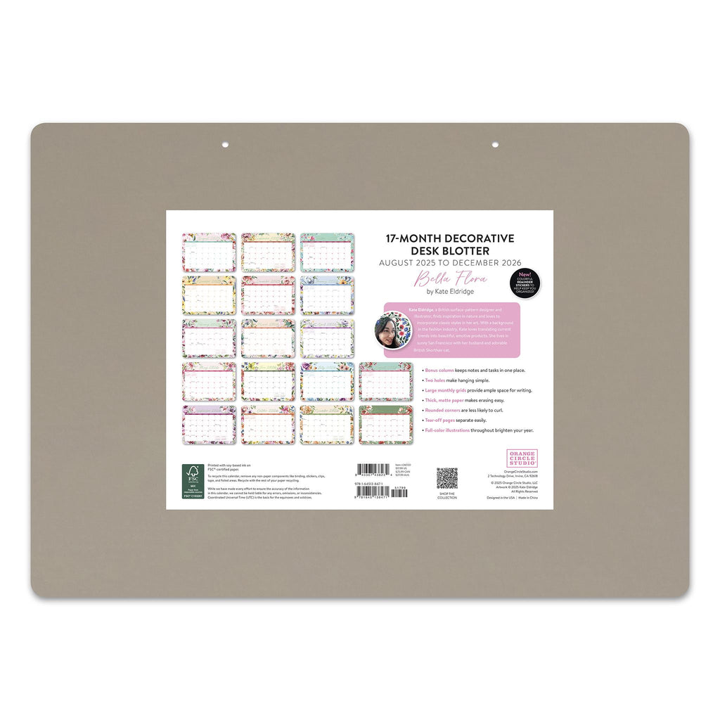 Égayez votre espace de travail avec le sous-main décoratif Bella Flora d'Orange Circle Studio. Imprimé sur un papier épais et mat, ce sous-main élégant et coloré présente de grandes grilles mensuelles offrant un espace généreux pour noter rendez-vous, tâches et rappels, ainsi qu'un joli motif chaque mois. Profitez des nouvelles fonctionnalités de ce sous-main, notamment une colonne de notes supplémentaire sur chaque page et des perforations pour l'utiliser comme calendrier mural ! Des illustrations et des motifs uniques ornent chaque page, et l'artiste perçoit une rémunération directe pour chaque calendrier acheté, contribuant ainsi au soutien des communautés créatives du monde entier.