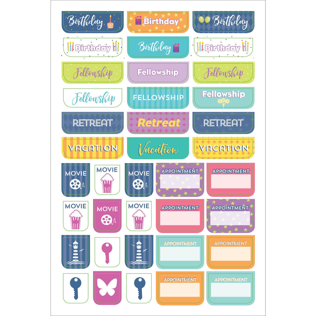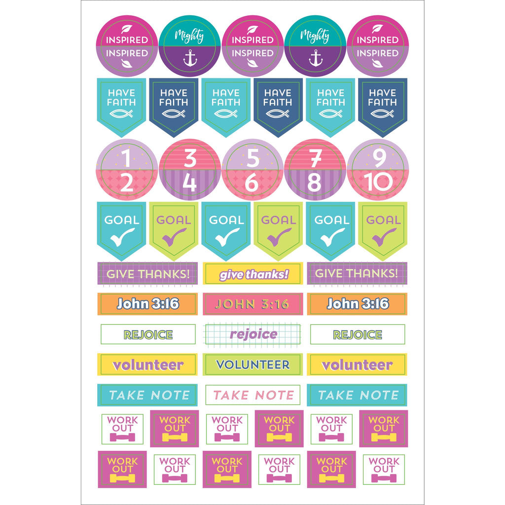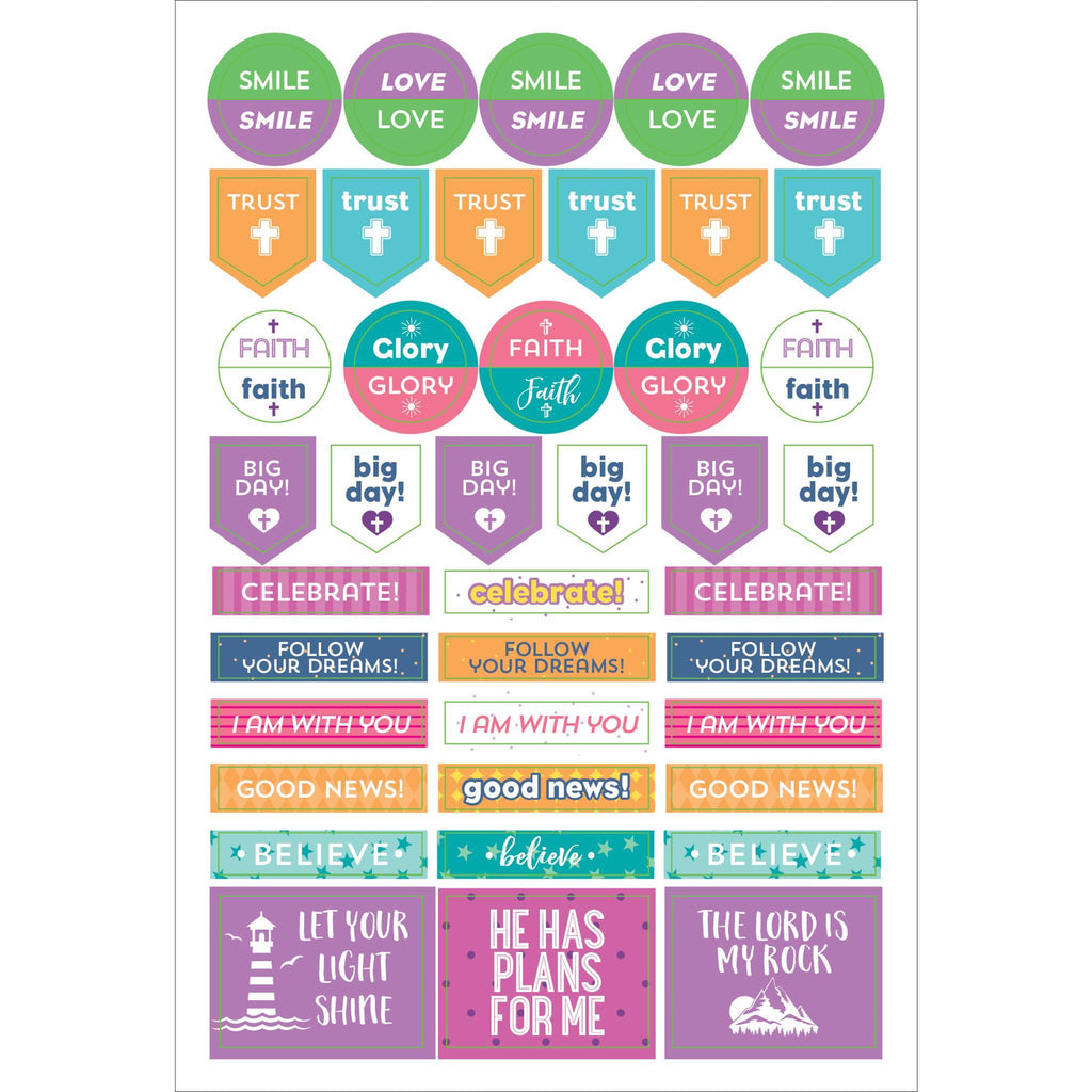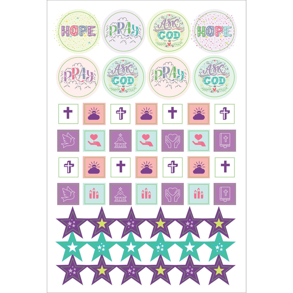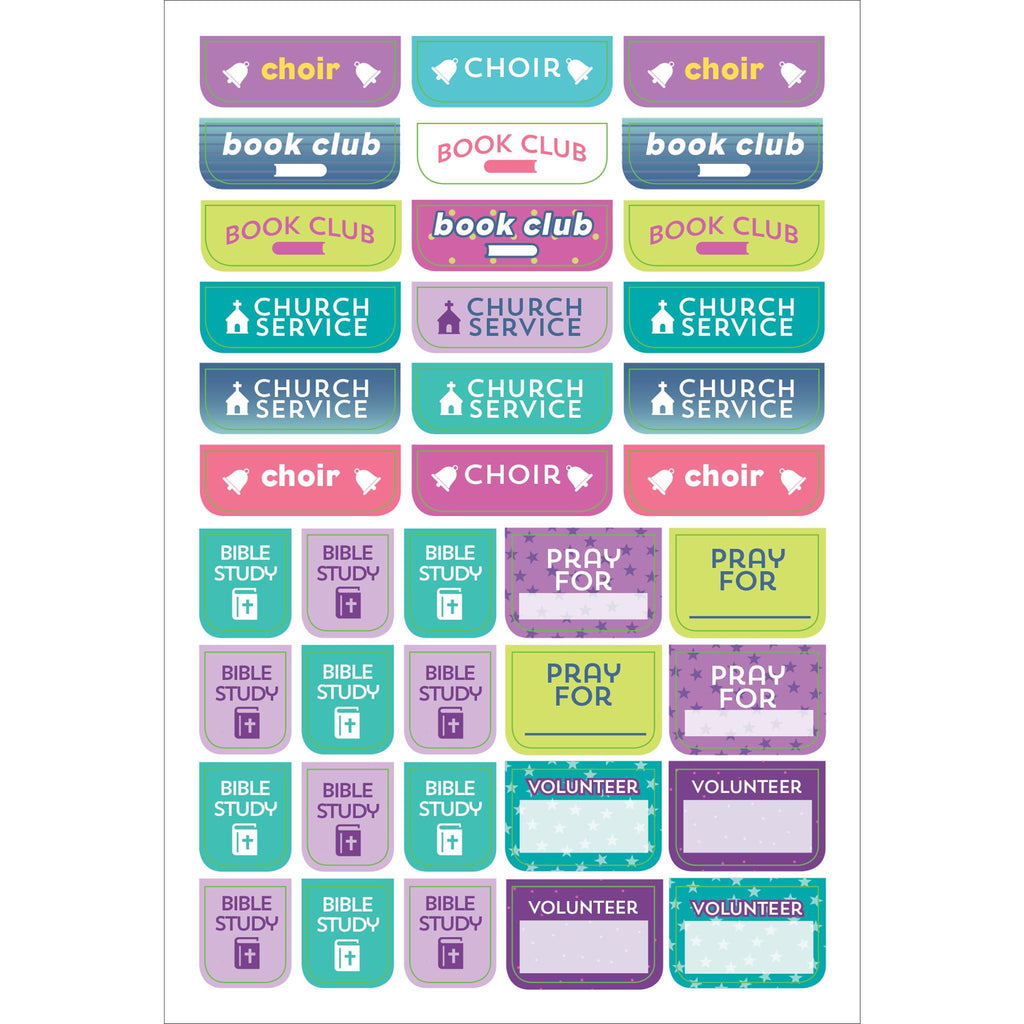 Voici plus de 450 autocollants à thème religieux pour personnaliser votre agenda, calendrier ou journal ! Utilisez-les pour noter vos rendez-vous, réunions, dates importantes et vos priorités. Le lot comprend également des bordures, des flèches, des autocollants à remplir et d'autres motifs pour le scrapbooking, votre livre de souvenirs et bien plus encore. Des centaines de choix s'offrent à vous : « Amen », « Sortie à l'église », « Prière exaucée », « École du dimanche », « Chorale », versets bibliques et bien d'autres. Couleurs et styles éclatants. Ce lot d'autocollants se glisse facilement dans les pochettes arrière des agendas et journaux Peter Pauper Press. Dimensions de l'emballage : 10 cm de large x 19 cm de haut.