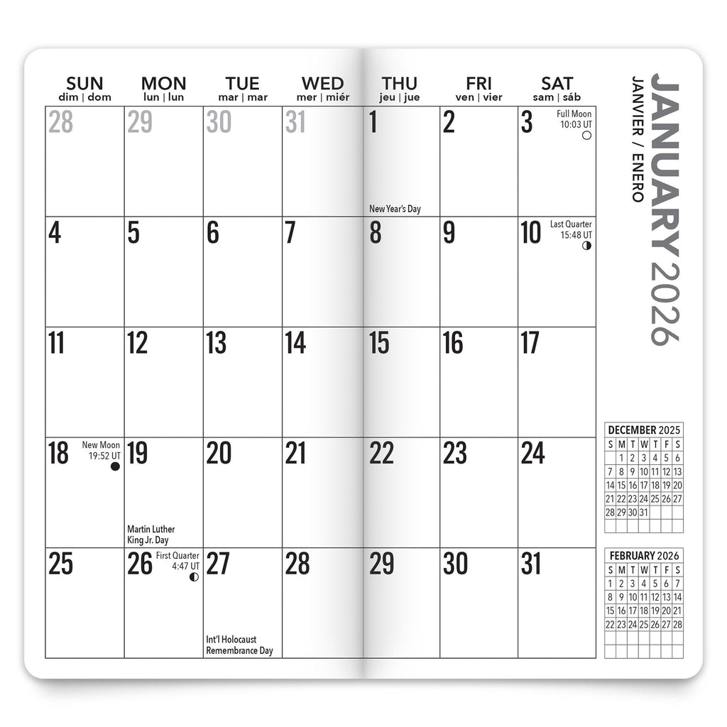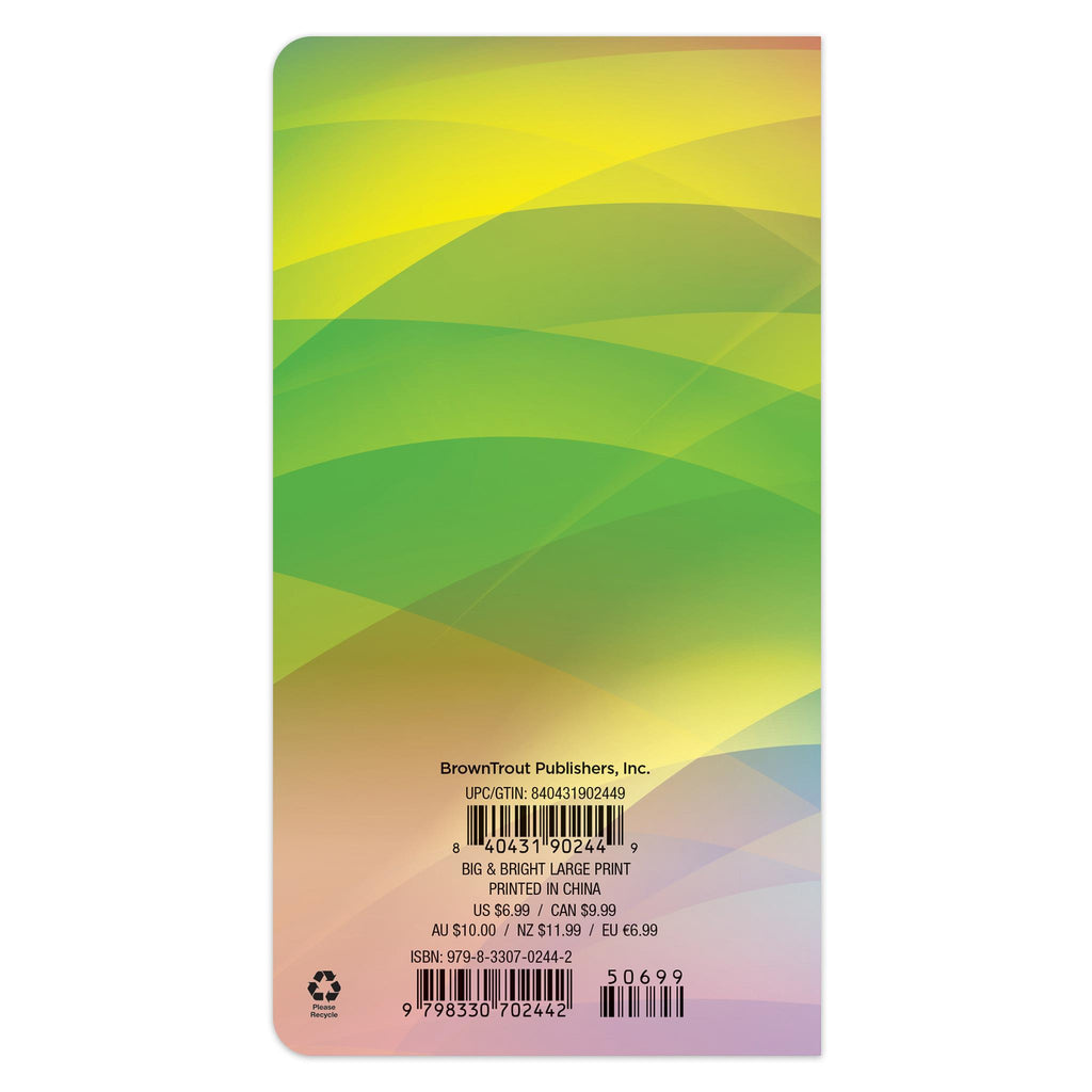 Ne perdez plus de temps à lire les petits caractères tout en restant organisé. Ce calendrier à gros caractères arbore des motifs audacieux et des couleurs vives qui s'accorderont à votre style. Grâce à sa police et ses chiffres de grande taille, et à son espace généreux pour noter vos rendez-vous et dates importantes, ce calendrier est idéal pour les personnes malvoyantes.