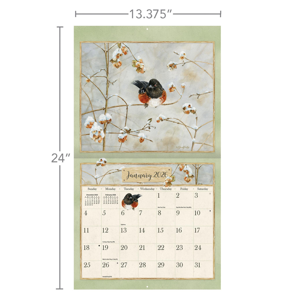 Le calendrier mural « Oiseaux du jardin 2026 » présente chaque mois des illustrations de Jane Shasky représentant des oiseaux et des fleurs de jardin aux couleurs chatoyantes. Les calendriers muraux LANG proposent des images mensuelles en couleur, un papier élégant gaufré lin et un œillet en laiton pour la suspension. Fond d'écran disponible en téléchargement.