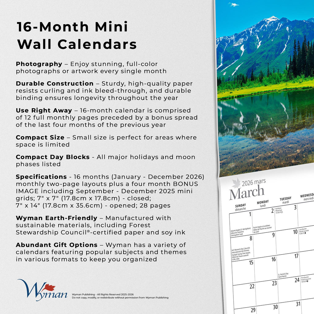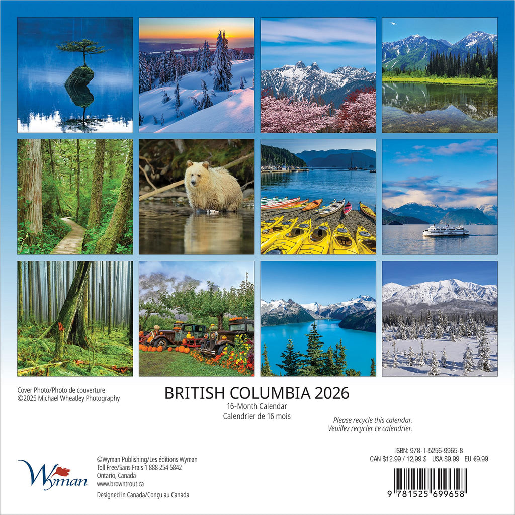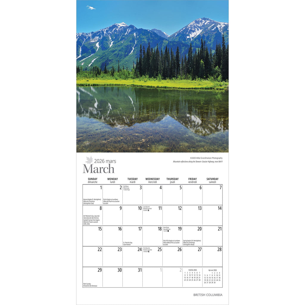 La Colombie-Britannique, province la plus à l'ouest du Canada, regorge de paysages pittoresques. Ce calendrier présente de superbes images des panoramas montagneux à couper le souffle, des lacs, des prairies et des forêts de la Colombie-Britannique. Ce mini calendrier mural est en anglais.
