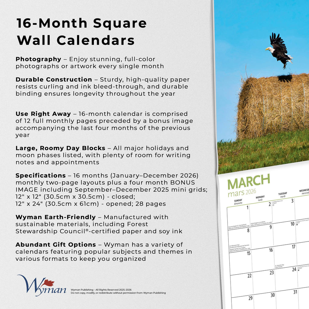 Admirez la majesté du Canada d'un océan à l'autre. Découvrez la diversité de ses paysages, des imposantes chaînes de montagnes aux côtes escarpées, des paisibles rives de lacs aux charmants villages. Ce calendrier mural carré est en anglais.