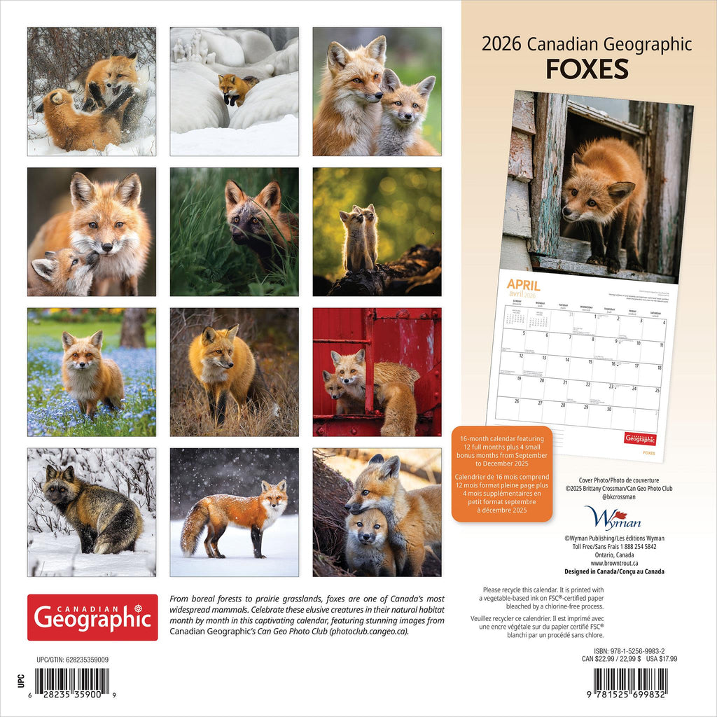Plongez dans l'univers enchanteur de ces créatures rusées et charismatiques grâce à notre calendrier des renards. Chaque mois, découvrez un aperçu captivant de la vie des renards à l'état sauvage, mettant en lumière leurs espiègleries, leur beauté saisissante et leurs habitats naturels. Des forêts luxuriantes aux prairies ouvertes, admirez la polyvalence des renards qui évoluent avec grâce et agilité dans leur environnement. Que vous soyez passionné de faune sauvage, amoureux de la nature ou simplement fasciné par le charme des renards, ce calendrier est une véritable ode visuelle à ces animaux intelligents et insaisissables.