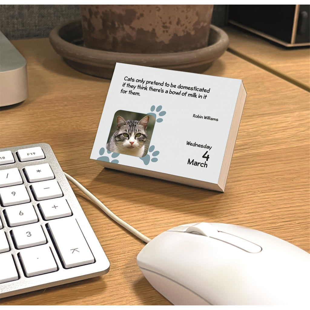 Ce mini calendrier de l'Avent 2026, intitulé « Chats », vous propose une année entière de chatons adorables pour égayer vos journées. Les amoureux des chats seront conquis par les photos colorées de nombreuses races différentes, ainsi que par les charmantes citations qui célèbrent le chat. Chaque jour de la semaine et le week-end présentent une nouvelle image et la date correspondante. Grâce à son support dépliable, ce calendrier se pose facilement sur un bureau ou toute autre surface plane. Son dos magnétique pratique permet également de le fixer sur une surface métallique. Ce calendrier est sans emballage plastique.