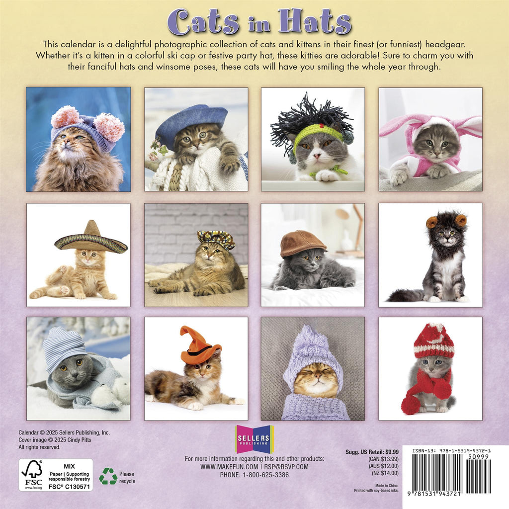 Depuis près de 20 ans, Cats in Hats enchante le public avec sa charmante collection de chats et chatons coiffés de chapeaux plus amusants les uns que les autres. Ces adorables félins vous charmeront à coup sûr avec leurs chapeaux fantaisistes et vous feront sourire toute l'année. Quoi de mieux qu'un adorable chat avec un chapeau craquant ? Un calendrier entier qui en regorge !