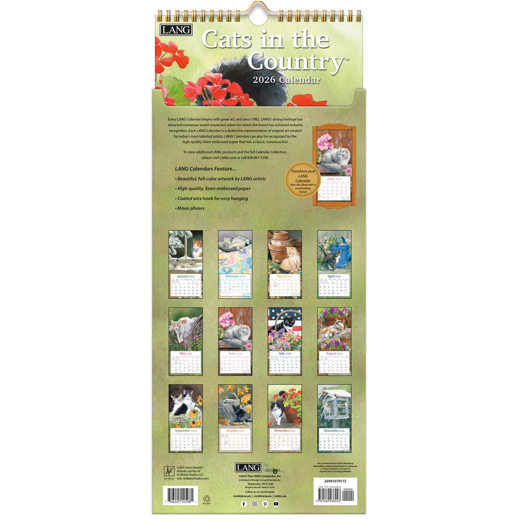 Le calendrier mural vertical « Chats à la campagne 2026 » présente chaque mois une illustration de chats espiègles réalisée par Susan Bourdet, dans un format vertical compact. Les calendriers muraux verticaux LANG sont imprimés sur un papier gaufré lin, reliés par une spirale avec crochet de suspension et accompagnés d'une couverture cadeau assortie.
