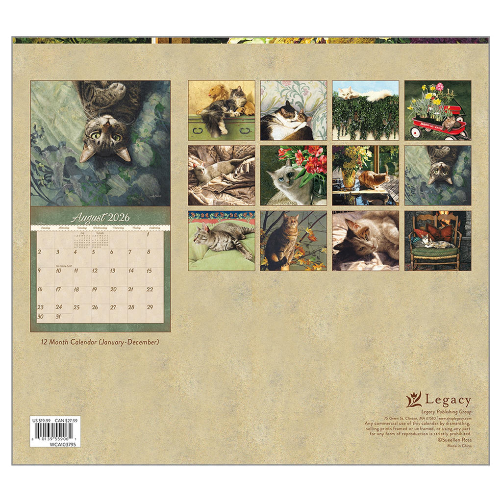 Ce calendrier mural Édition Spéciale Héritage 2026 met en scène vos chats préférés, représentés avec amour et réalisme par l'artiste Sueellen Ross. Chaque calendrier de 12 mois est accompagné de 2 cartes de vœux bonus et est imprimé sur un papier haut de gamme gaufré lin, offrant un toucher luxueux et raffiné. Le calendrier et les cartes sont présentés dans une élégante pochette de protection en papier. Le bloc-notes est conçu spécifiquement pour chaque calendrier afin de s'harmoniser avec les illustrations. La dernière page contient un calendrier sur deux ans (2026/2027) et un espace pour vos notes. Un renfort en laiton sur la couverture assure une meilleure durabilité.