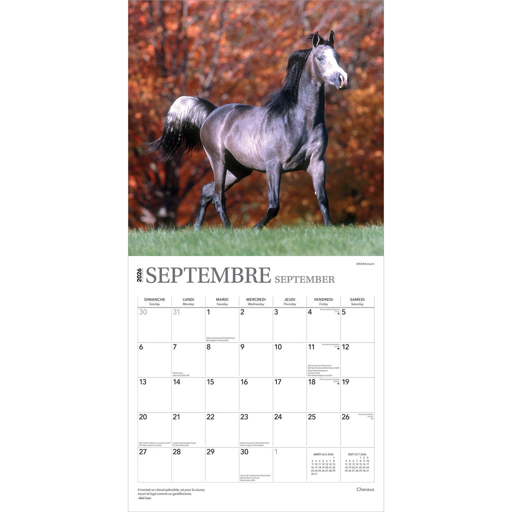 Ce superbe calendrier célèbre les chevaux de toutes sortes. Découvrez de superbes photographies de ces magnifiques bêtes au fil des saisons. Ce calendrier présente en couverture un sceau argenté. Ce calendrier mural carré est produit en français. - - - Avant que les humains ne domestiquent le cheval, cet animal exquis vivait en liberté et en liberté. Aujourd'hui, le cheval est utilisé dans le monde entier pour le travail, le plaisir et le sport. Qu'ils se tiennent fièrement à l'aise, au pas, au trot, au galop ou au galop, les chevaux sont un spectacle véritablement inspirant. En reconnaissance de l'histoire d'amour universelle du monde avec le cheval, ce calendrier est dédié aux amoureux des chevaux du monde entier.