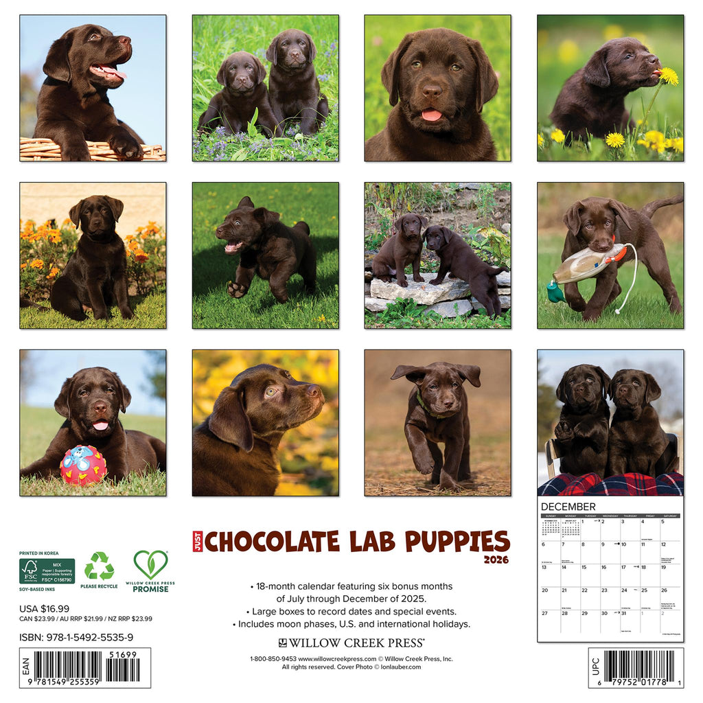 De tendres petits chiots Labrador chocolat, avec leurs grands yeux, leur cœur immense et leurs pattes potelées, sont à l'honneur. Ces douze adorables photos en couleurs vous feront sourire toute l'année. Organisez-vous pour l'année à venir avec le calendrier mural 2026 de Willow Creek Press (30,5 x 30,5 cm). Ce calendrier dispose de grandes cases pour noter facilement les dates et les événements, vous aidant ainsi à être efficace et à respecter vos engagements. Laissez ce calendrier vous guider vers une année plus organisée, réussie et épanouissante. CADEAU IDÉAL - Ne cherchez plus le cadeau parfait pour toute occasion spéciale. Rendez l'année de quelqu'un inoubliable avec l'un de nos calendriers muraux 2026. Nos calendriers sont le choix idéal pour vos amis et votre famille, même pour ceux à qui il est difficile de faire un cadeau. PLANIFICATION - Restez organisé et inspiré tout au long de l'année. Ce calendrier est idéal pour prendre des notes, noter les dates importantes, suivre vos rendez-vous et faciliter l'organisation des activités familiales. IMAGES EXCEPTIONNELLES - Des images nettes et détaillées en couleurs chaque mois, pour une décoration murale parfaite à la maison, au bureau ou à l'école. GRANDES CASES - Format 30,5 x 30,5 cm, avec de larges cases journalières offrant un espace d'écriture généreux. QUALITÉ SUPÉRIEURE - Papier de haute qualité qui reste bien à plat une fois accroché et offre des couleurs vives et éclatantes. VUE D'ENSEMBLE MENSUEL - Planifiez vos mois à venir ou consultez les mois précédents en un coup d'œil grâce aux grilles. ÉCO-RESPONSABLE - Willow Creek Press s'engage pour l'environnement et la durabilité de ses produits. Nos calendriers muraux 2026 (30,5 x 30,5 cm) sont imprimés avec des encres à base de soja sur du papier certifié FSC de haute qualité pour une écriture fluide. PÉRIODE - Calendrier mural 2026 avec 6 mois bonus de juillet à décembre 2025. FONCTIONNALITÉS SUPPLÉMENTAIRES - Jours fériés américains et internationaux et phases de la lune (heure centrale) indiqués pour chaque mois. Faites de cette année votre plus belle réussite grâce à ce magnifique calendrier mural. Apprenez à être plus efficace, un mois à la fois !