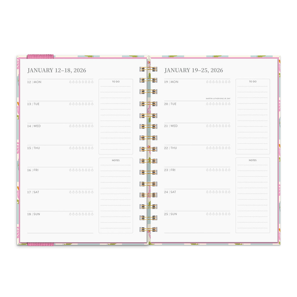 Avec sa pochette à stylo en similicuir pratique et sa fermeture élastique, l'agenda Oliver d'Orange Circle Studio vous permet d'avoir tout le nécessaire pour une organisation optimale à portée de main. Suivez vos objectifs, votre budget, votre humeur et votre hydratation grâce aux outils de suivi, et notez vos rendez-vous, réunions, anniversaires et autres événements importants grâce aux pages mensuelles et hebdomadaires. De plus, une section contacts et des pages de notes lignées vous offrent un espace supplémentaire pour consigner vos priorités. Son format compact et pratique vous permet de gérer facilement votre emploi du temps chargé au travail, à l'école et à la maison. Des autocollants en couleur ajoutent une touche ludique à votre organisation !
