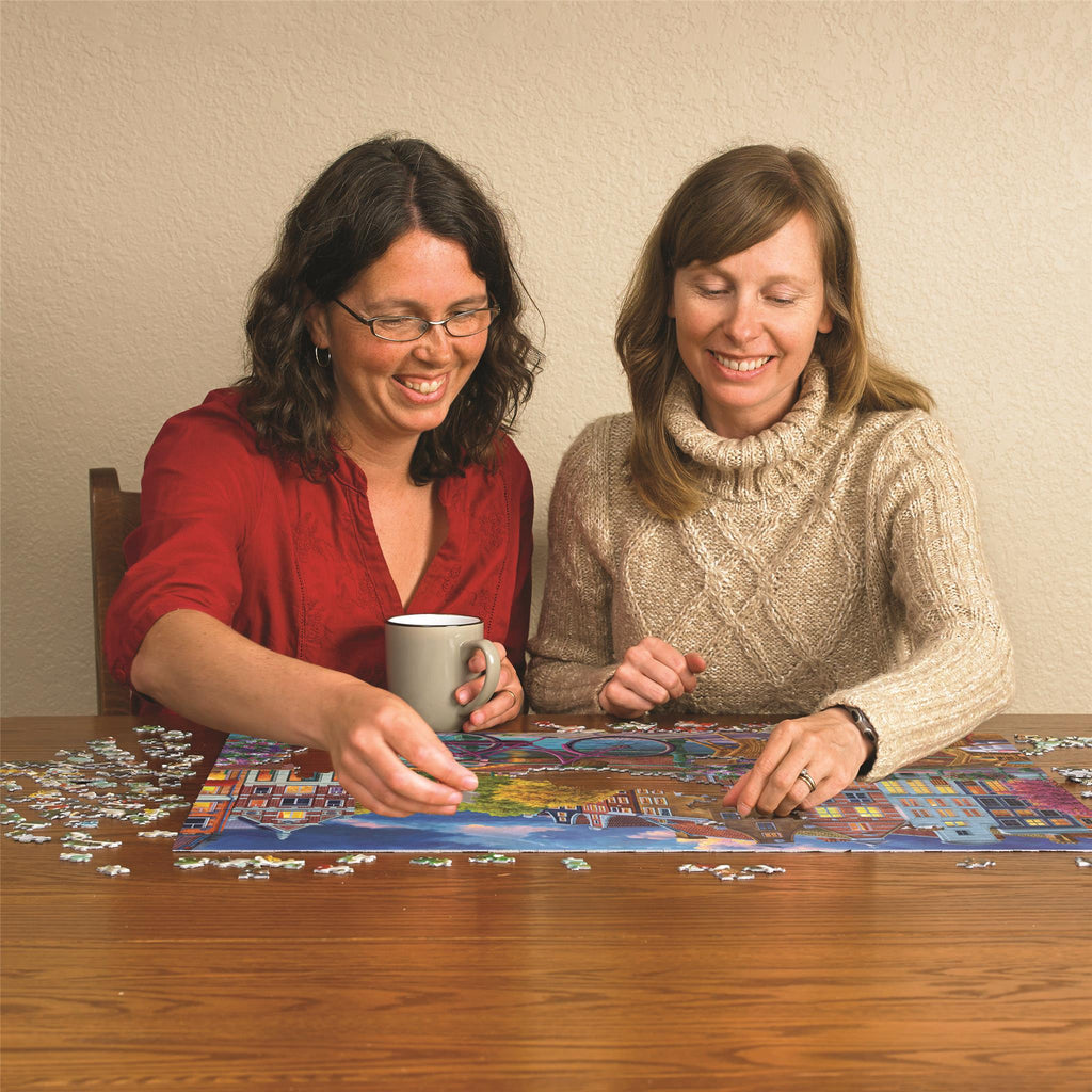 Le soleil s'est couché et la lueur des lumières de cette rue pittoresque crée une atmosphère chaleureuse et accueillante. Un vélo est appuyé avec précaution contre la rambarde du canal. Partez à la découverte d'Amsterdam avec ce puzzle de 1 000 pièces. Les puzzles Cobble Hill proposent des pièces aux formes aléatoires originales : aucune n'est identique. Un poster pratique est inclus.
