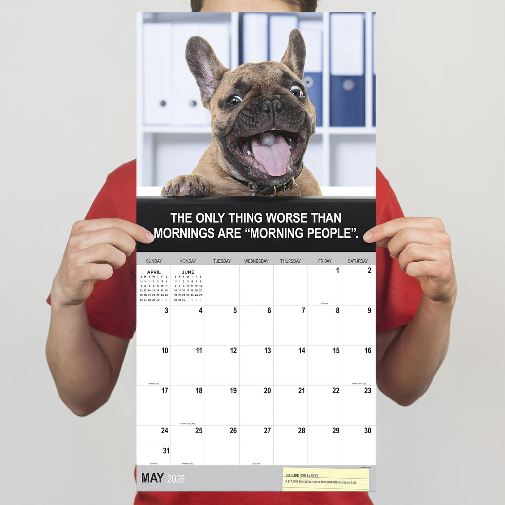 Rendez le suivi de vos réunions plus agréable avec notre calendrier mural 2026 « Chiens de bureau » mettant en scène des chiens espiègles et leurs pitreries au bureau ! Imprimé sur du papier glacé premium certifié FSC, ce calendrier mural de 12 mois couvre la période de janvier à décembre 2026 et mesure 30,5 cm x 30,5 cm (30,5 cm x 61 cm ouvert). Il comprend treize images en couleur, des grilles mensuelles et un aperçu bonus des quatre mois de janvier à avril 2027.