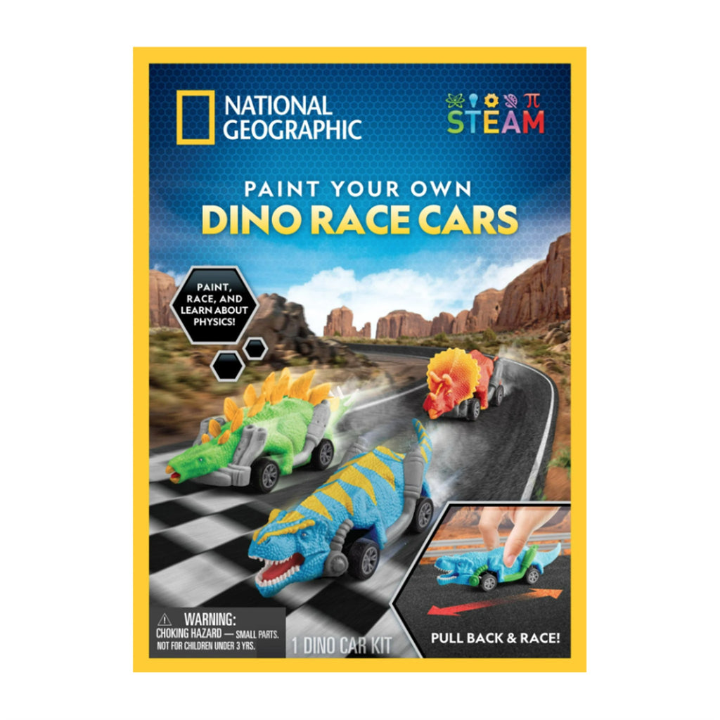 Le kit de voitures de course de dinosaures National Geographic permet aux enfants de peindre, de faire la course et d'apprendre la physique de manière ludique et interactive. Il comprend trois voitures à rétrofriction en forme de T. rex, de Tricératops et de Stégosaure, ainsi que six couleurs de peinture, un pinceau et une palette. Les enfants peuvent personnaliser leurs voitures avec des motifs créatifs, puis les faire rouler pour s'amuser, sans piles. En jouant, ils découvrent des concepts physiques fondamentaux comme le mouvement, la force et la vitesse. Un guide pédagogique en couleurs fournit des informations sur les dinosaures et des conseils de peinture, alliant art, science et jeu actif. Idéal pour les enfants de 5 ans et plus, ce kit favorise la créativité, la motricité fine et la curiosité sur le mouvement, ce qui en fait un cadeau amusant et éducatif pour tout jeune explorateur.